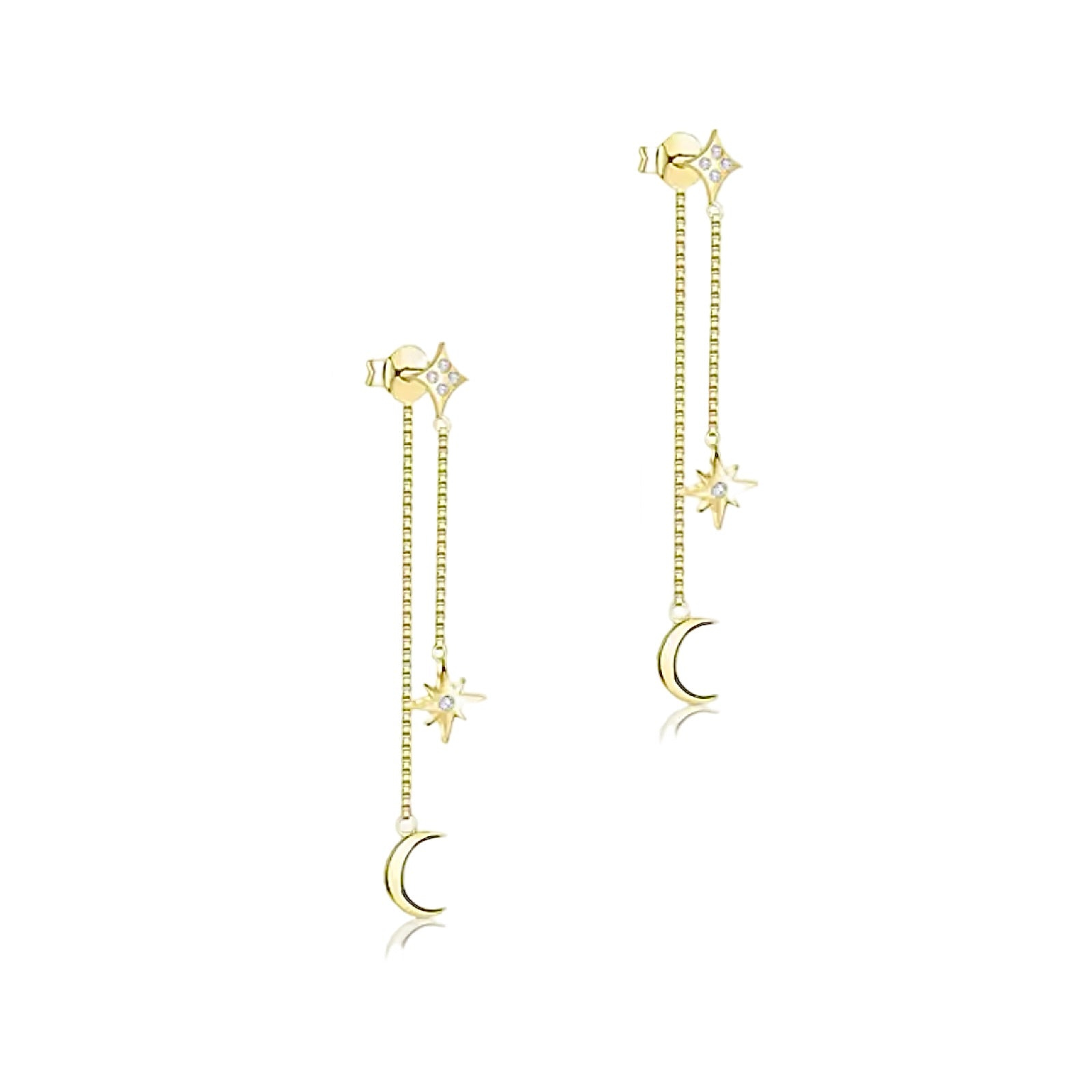 Illuminate your accessory collection with the Gold Moon and Star Dangly Studs, a whimsical pair that beautifully combines celestial charm with elegance. These studs feature delicate moon and star accents that dangle gracefully, adding a playful touch to any outfit. Perfect for both casual wear and special occasions, they are crafted for comfort and durability, ensuring you can enjoy them all day long. Embrace your unique style with these enchanting dangly studs!