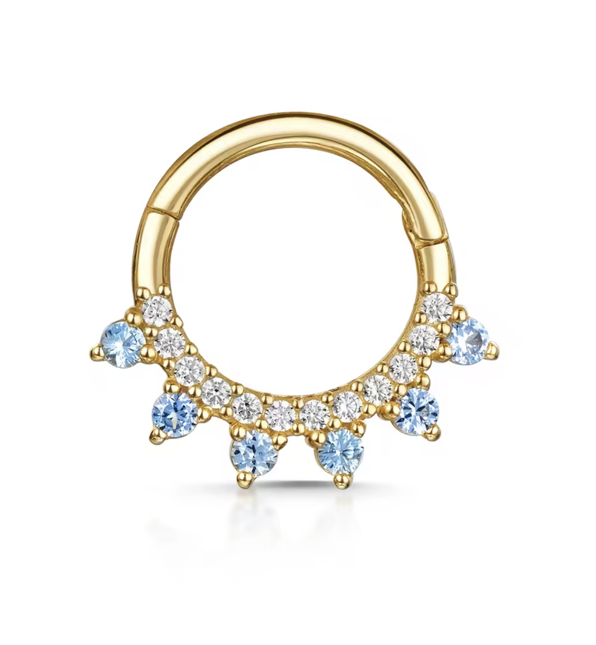 Elevate your ear stack with our Gold Turquoise Helix Circular Stud, a perfect blend of bold colour and sleek design.Crafted from durable stainless steel and finished with a radiant gold plating, this earring is both waterproof and tarnish-resistant, ensuring it maintains its shine through daily wear. The vibrant turquoise crystal adds a touch of boldness, making it a perfect choice for helix, cartilage, or upper lobe piercings. Whether you're dressing up for a special occasion or adding a splash of colour to your everyday look, this stud is a versatile and stylish accessory.