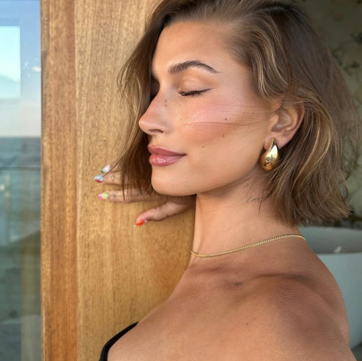 - Gold tear drop earrings