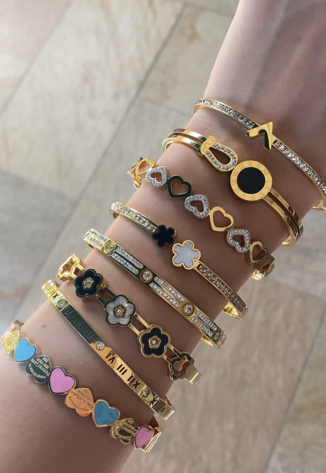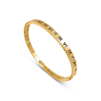 Add some elegance to your jewellery collection with the Gold Roman and Diamond Bangle! This stunning gold-plated bangle features Roman numerals and sparkling diamond-like accents, making it a perfect blend of timeless style and modern glamour. Whether you're dressing up for a special occasion or adding a bit of shine to your everyday look, this bangle is a versatile and chic piece that will elevate any outfit.