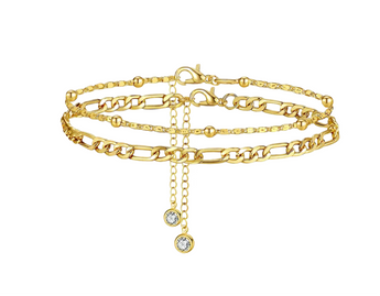 Add some elegance to your look with the Gold Two Layered Anklet! This beautiful gold-plated anklet features two sleek, layered chains for a trendy and stylish look. Whether you're going all out for a special occasion or adding a subtle flair to your daily outfit, this anklet is the perfect way to elevate your style effortlessly.