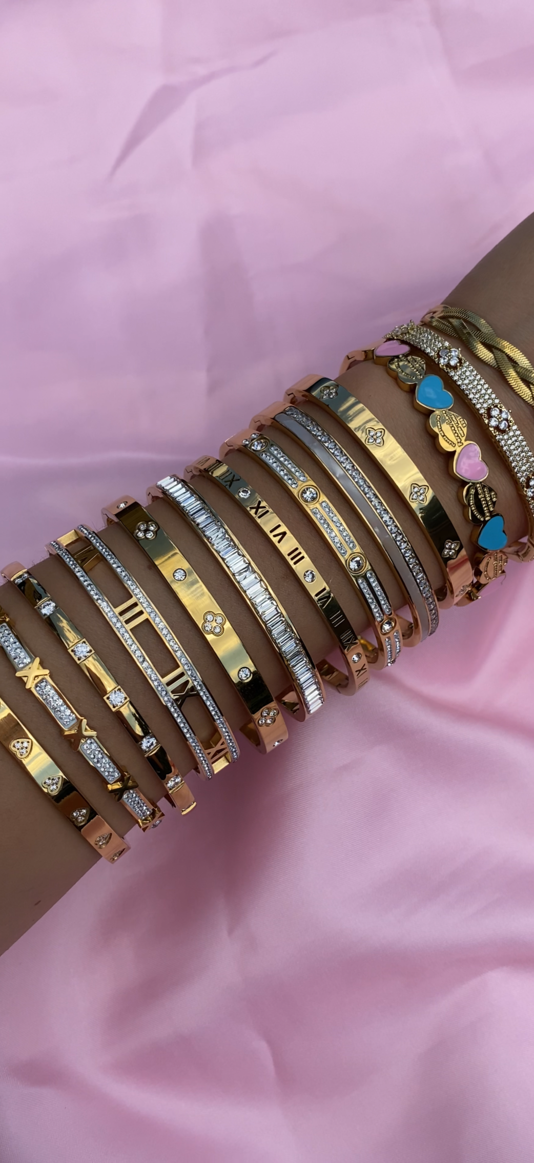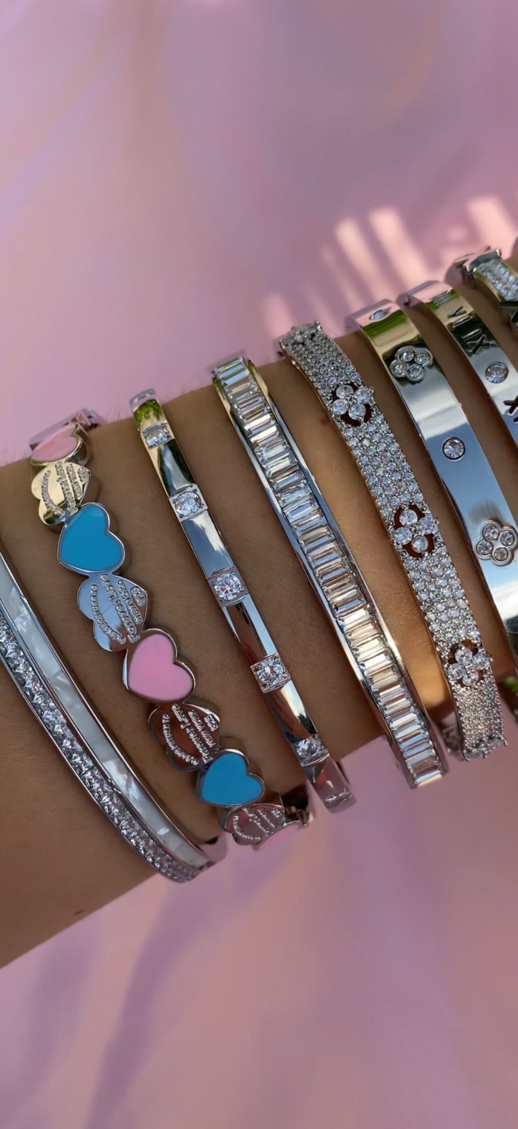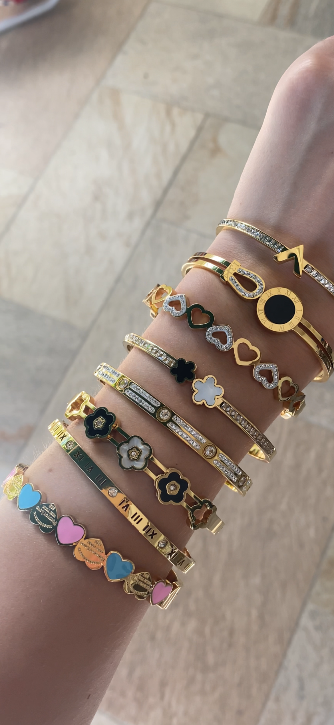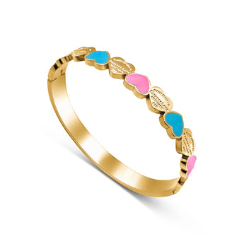 Add some heartwarming style to your jewellery collection with the Gold Triple Heart Bangle! This stunning gold-plated bangle showcases three delicate heart charms, symbolizing love and connection. Whether you’re dressing up or keeping it casual, this elegant piece adds a touch of romance and sophistication to any outfit. It’s the perfect statement piece to elevate your look and share those heart vibes everywhere you go.