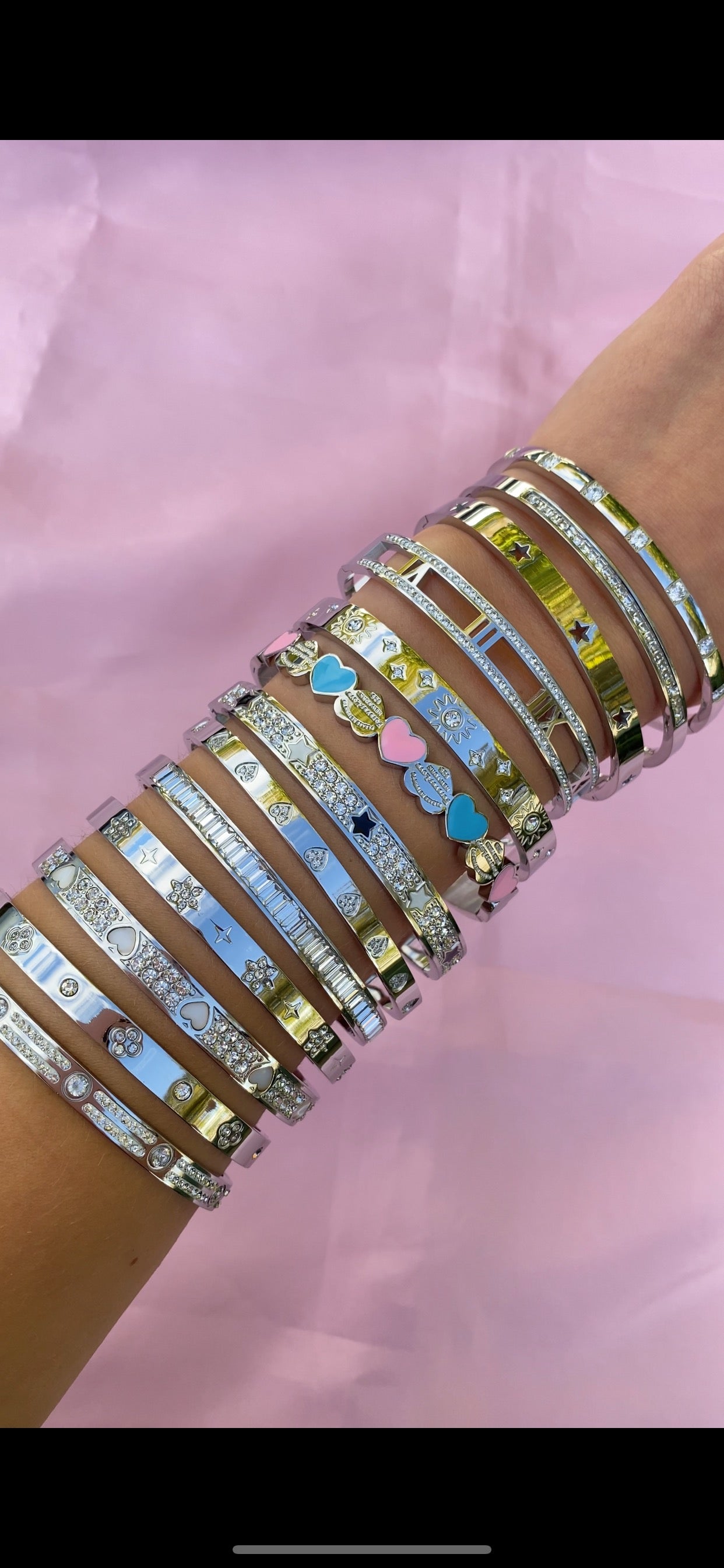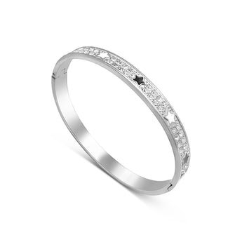Add a celestial touch to your jewellery collection with the Silver Black Star Bangle, a stunning piece that beautifully combines elegance with a hint of whimsy. This bangle features intricate black star accents set against a sleek silver background, creating a striking contrast that enhances any outfit. Perfect for stacking or wearing alone as a statement piece, it’s ideal for both casual outings and special occasions. Crafted from high-quality materials, this bangle ensures durability and comfort for all-day wear. Embrace your unique style with this enchanting star bangle!