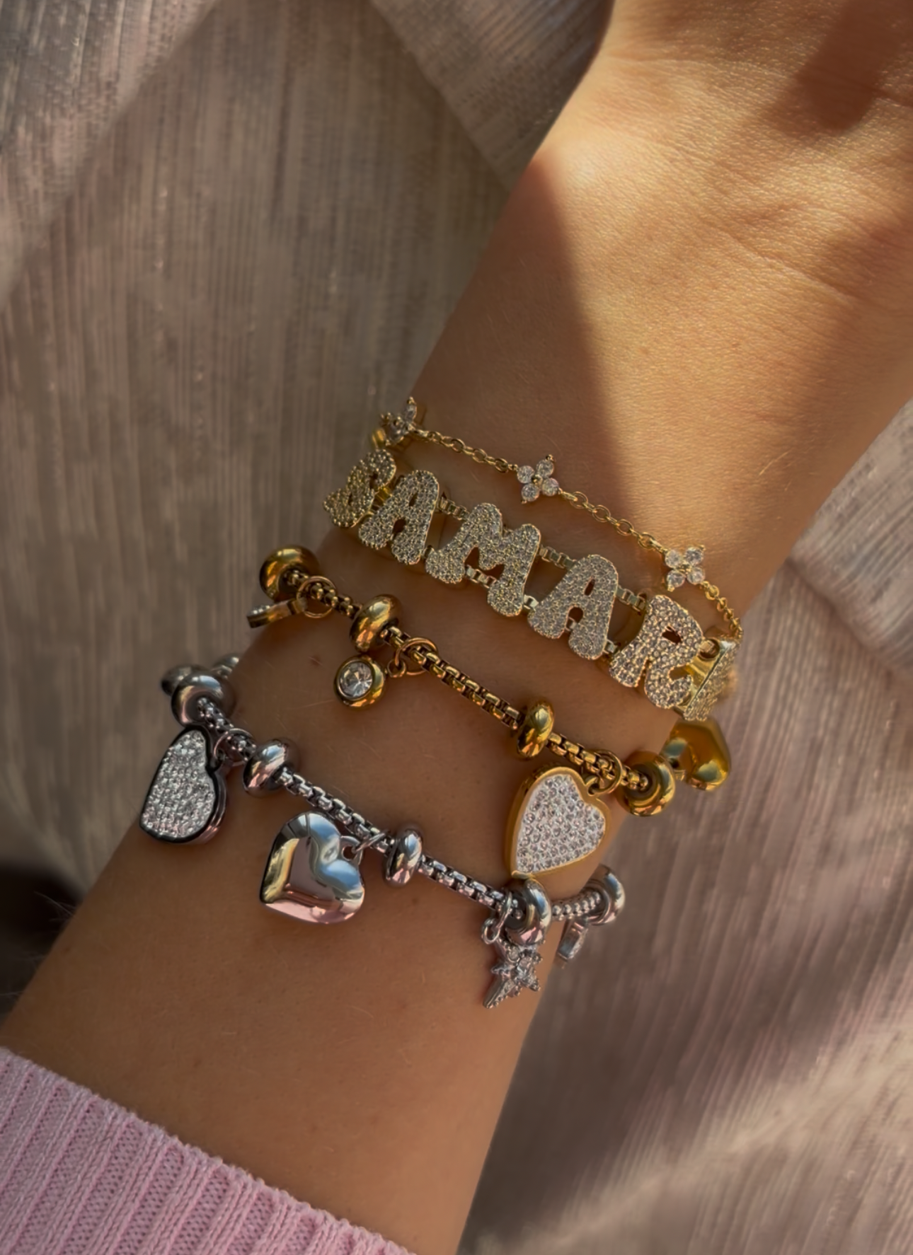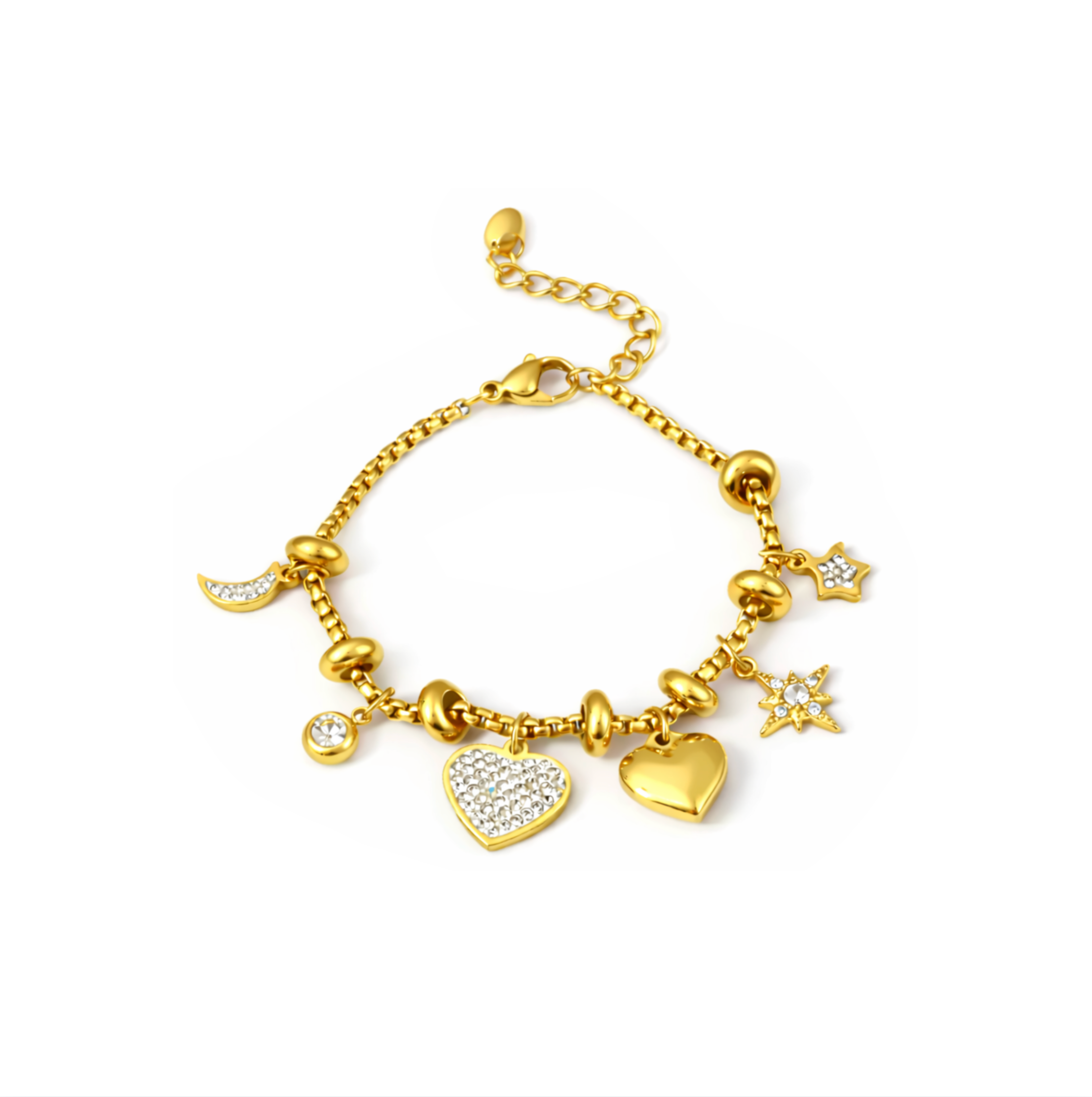 A playful little statement for your wrist stack, the Gold Playful Charm Bracelet features a gold-plated, waterproof, tarnish-free chain finished with a mix of cute, eye-catching charms that add movement, sparkle, and personality to any look, making it the perfect gold charm bracelet, trendy charm jewellery, and everyday standout piece for anyone who loves fun, expressive accessories that still feel polished and wearable.