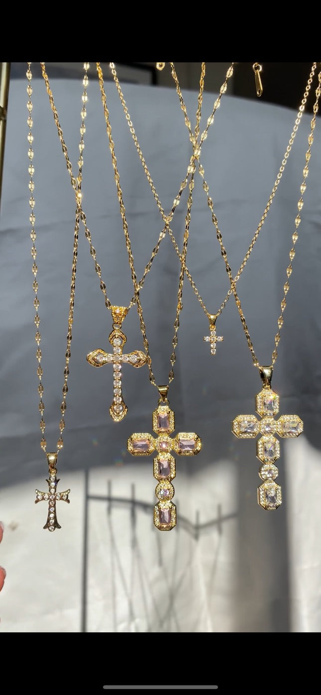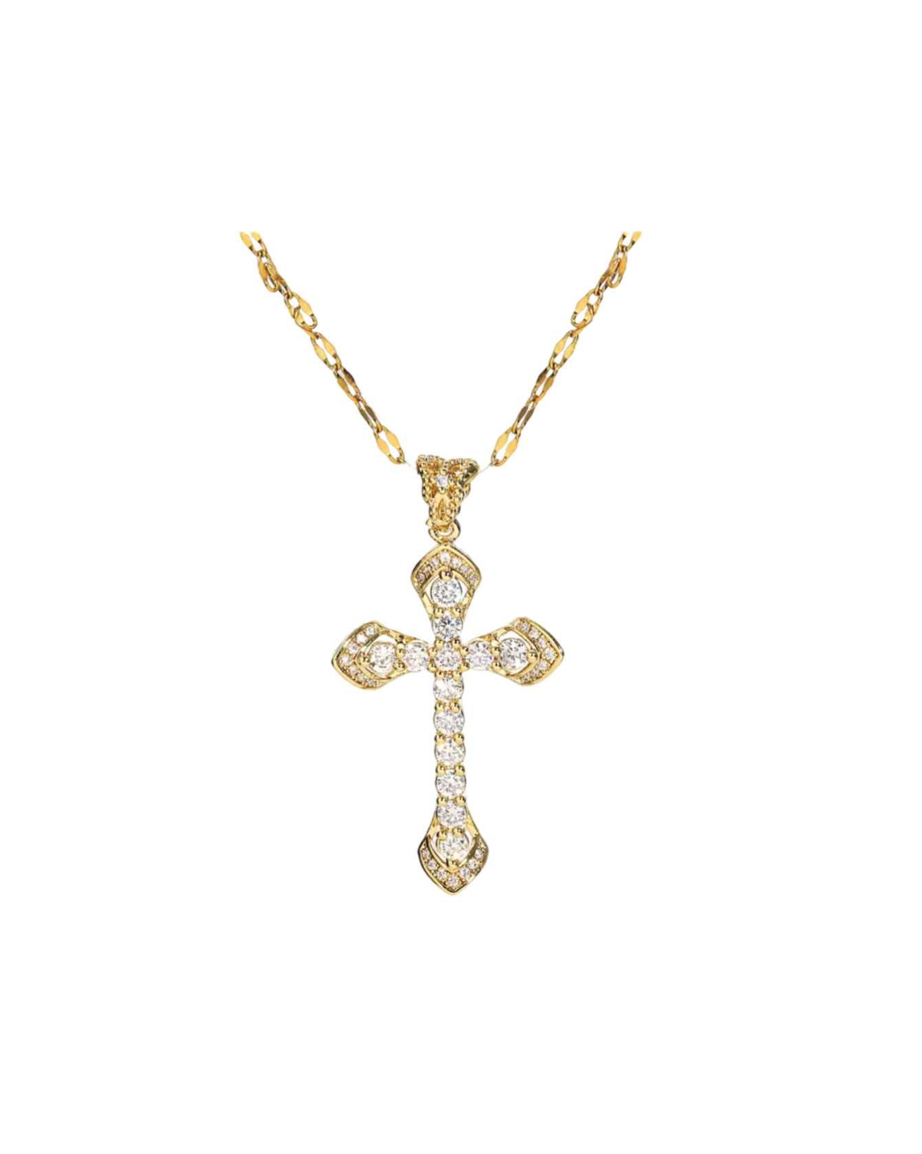 Gold Art Deco Cross Necklace