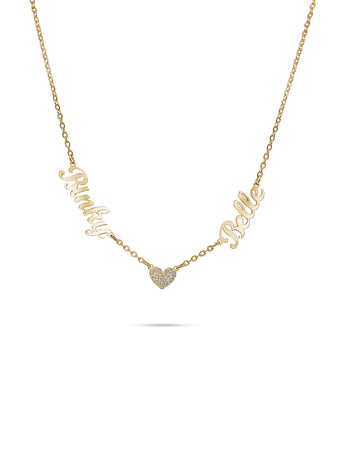 Gold Custom 2 Name Heart Necklace