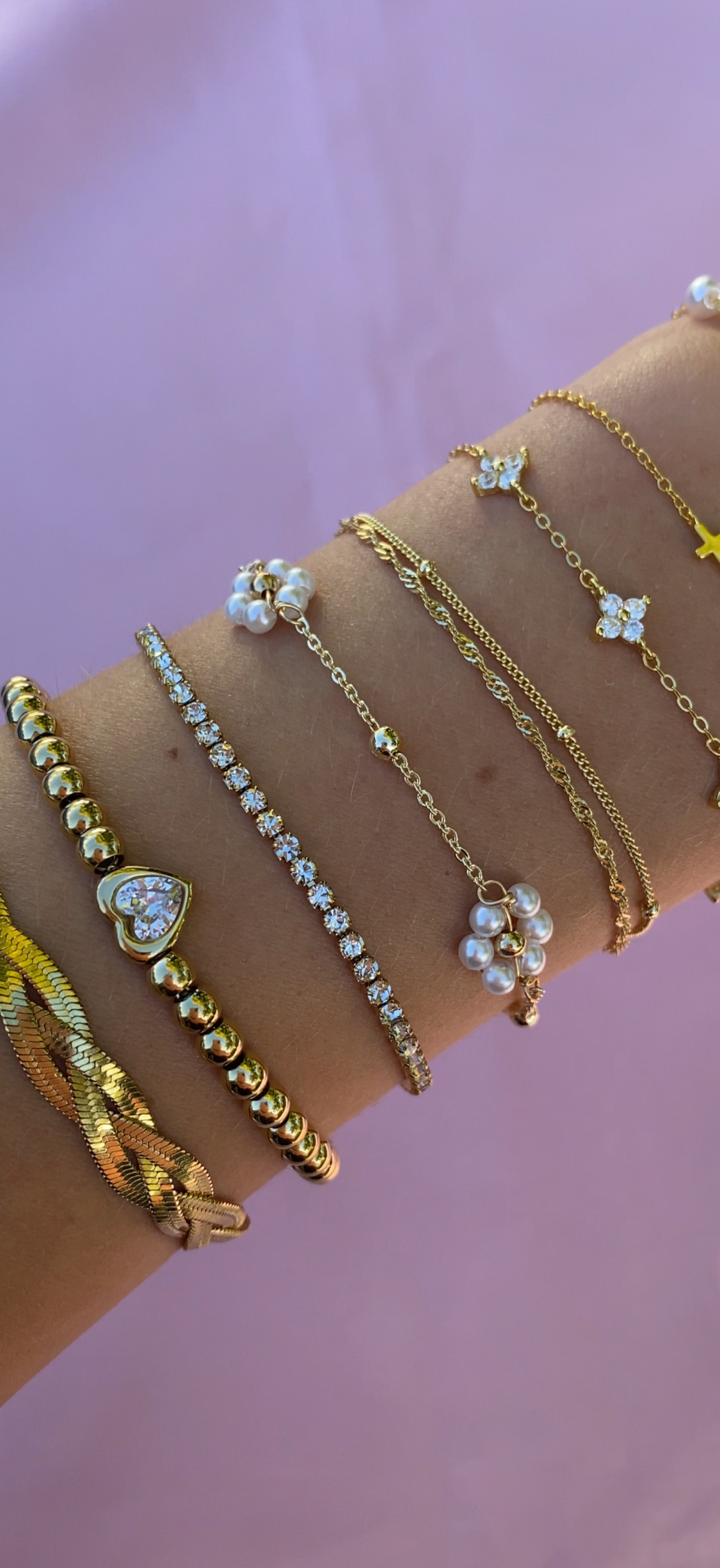 Add a radiant glow to your style with the Gold Aurora Glow Bracelet! This elegant gold-plated bracelet is designed with a sleek and sophisticated style, perfect for elevating your everyday outfits or adding a touch of glam for special occasions. Whether worn solo or layered with other pieces, this bracelet brings a chic, polished vibe to any look. It’s a must-have for anyone looking to shine with effortless elegance.