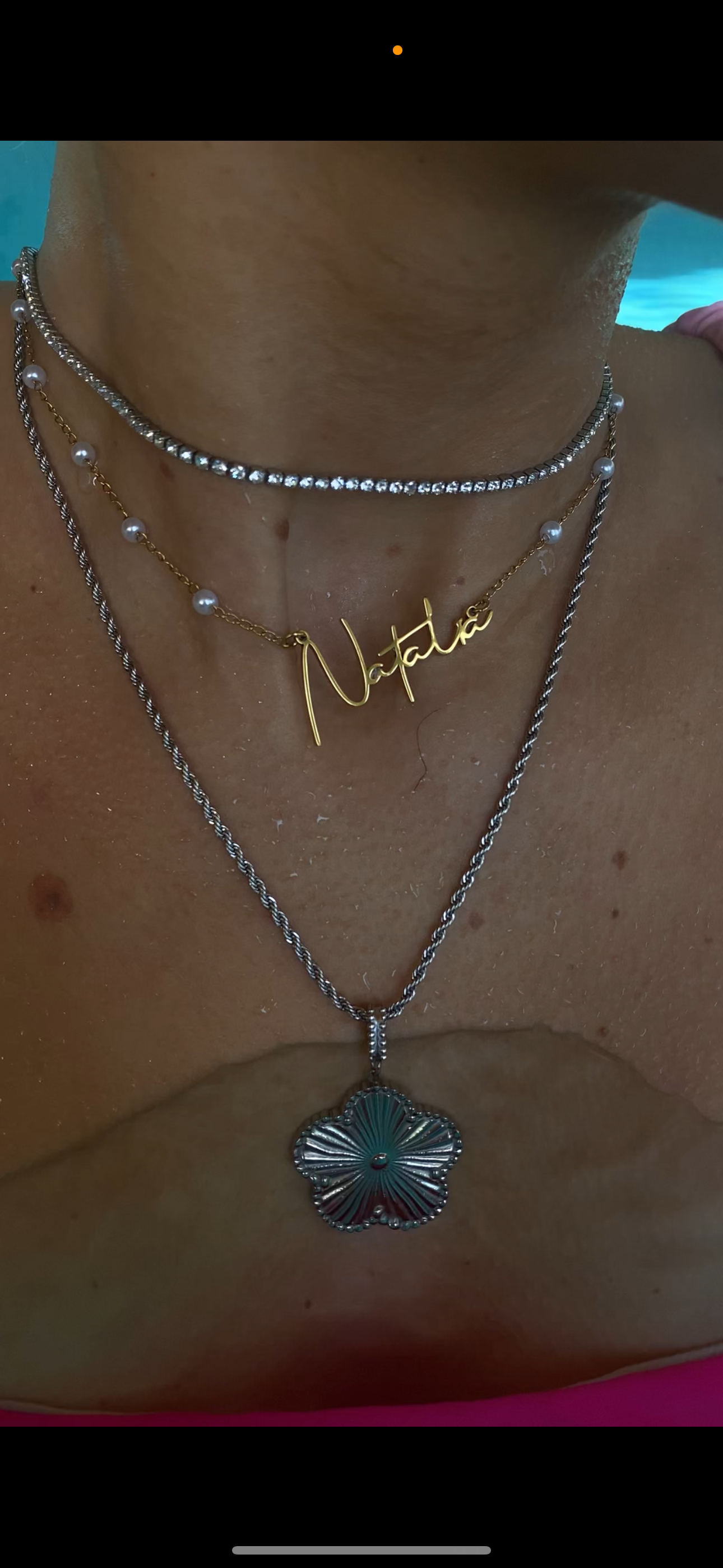 Make a bold statement with this eye-catching piece. Featuring a large, intricately lined silver flower pendant, this necklace adds a touch of elegance and drama to any outfit. Its unique design makes it a standout accessory for both special occasions and elevating everyday wear. Crafted with attention to detail, this necklace is a must-have for those seeking a distinctive addition to their jewellery collection.