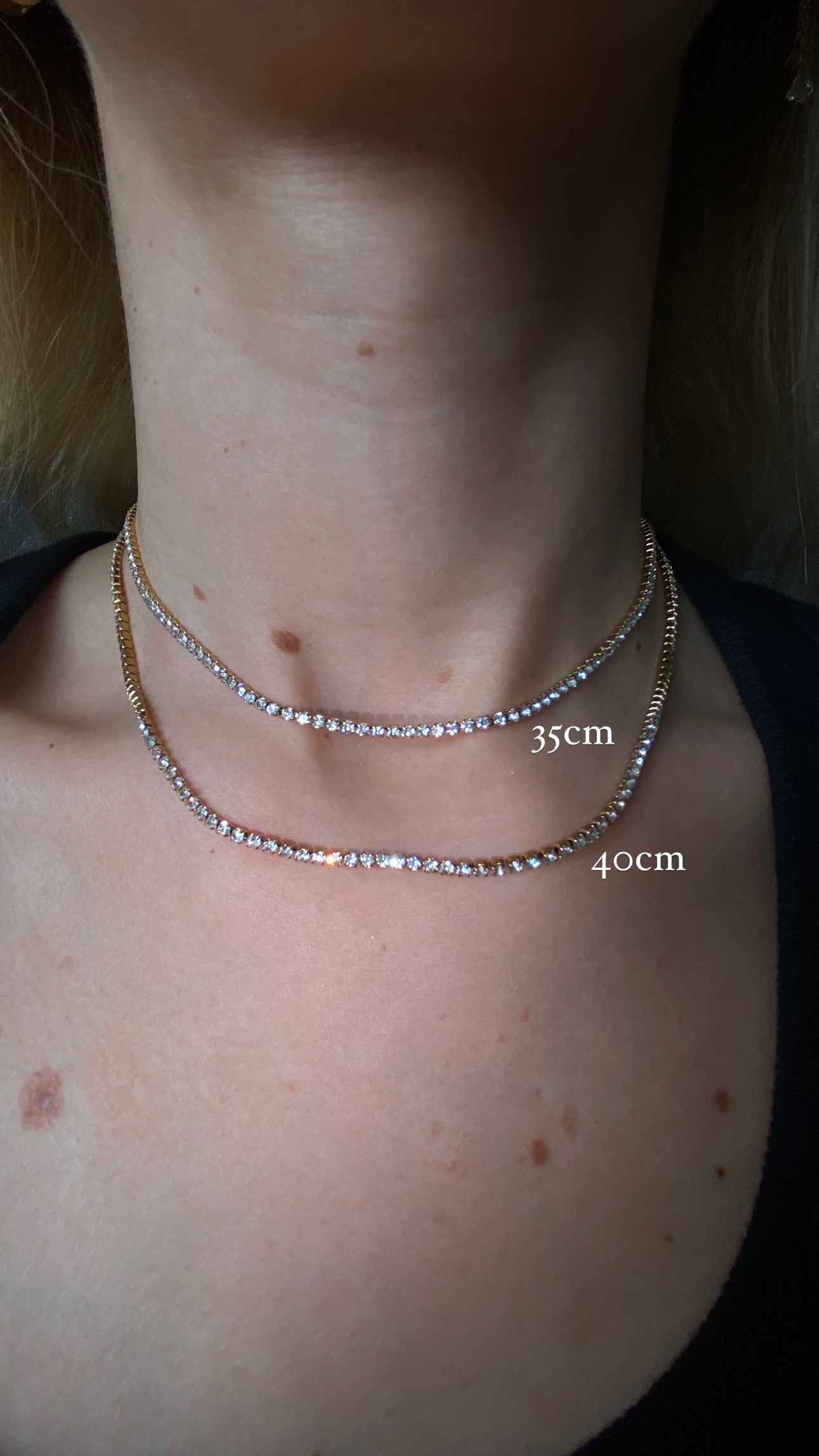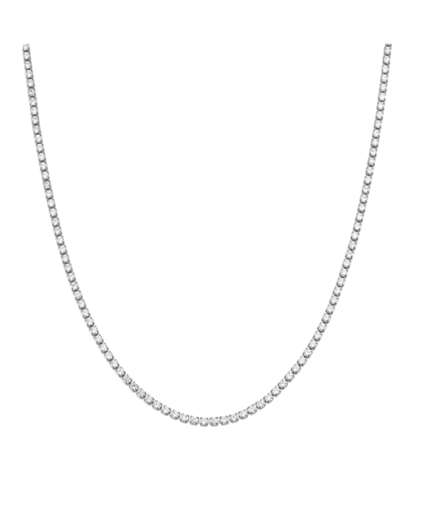 Elevate your look with the Silver Tennis Necklace. This stunning silver-plated necklace features a classic tennis design, perfect for adding a touch of elegance and sparkle to any outfit. Whether you're dressing up for a special occasion or simply want to enhance your everyday style, this timeless piece offers sophistication and versatility. It's ideal for layering or wearing solo for a chic, minimalist look.