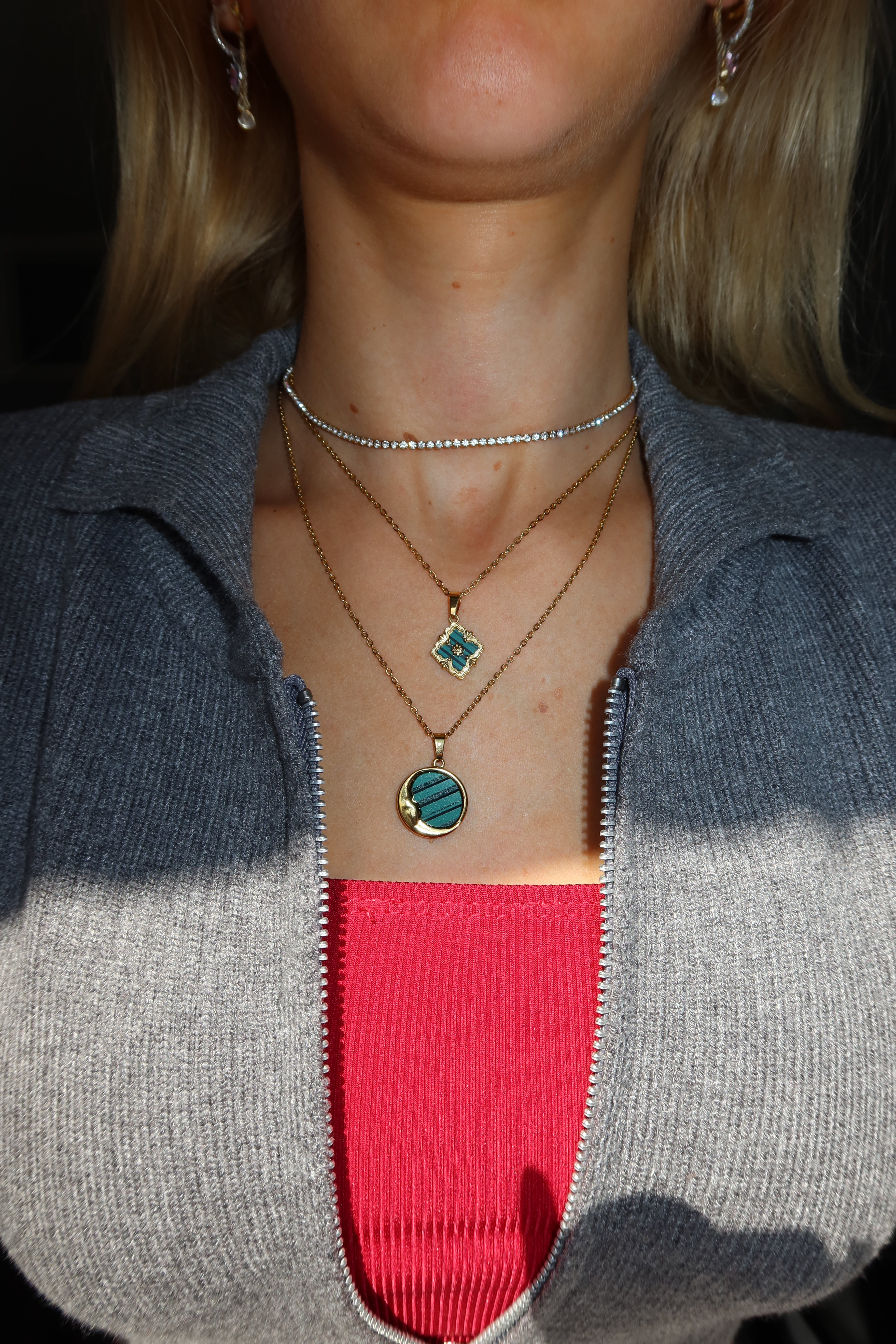 The Silver Tennis Necklace and Bracelet Set offers a sleek and elegant look, featuring a silver-plated tennis design for both the necklace and bracelet. This set adds a touch of sophistication and timeless style to any outfit, perfect for formal events or daily wear.