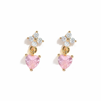 Gold Clover Pink Heart Studs