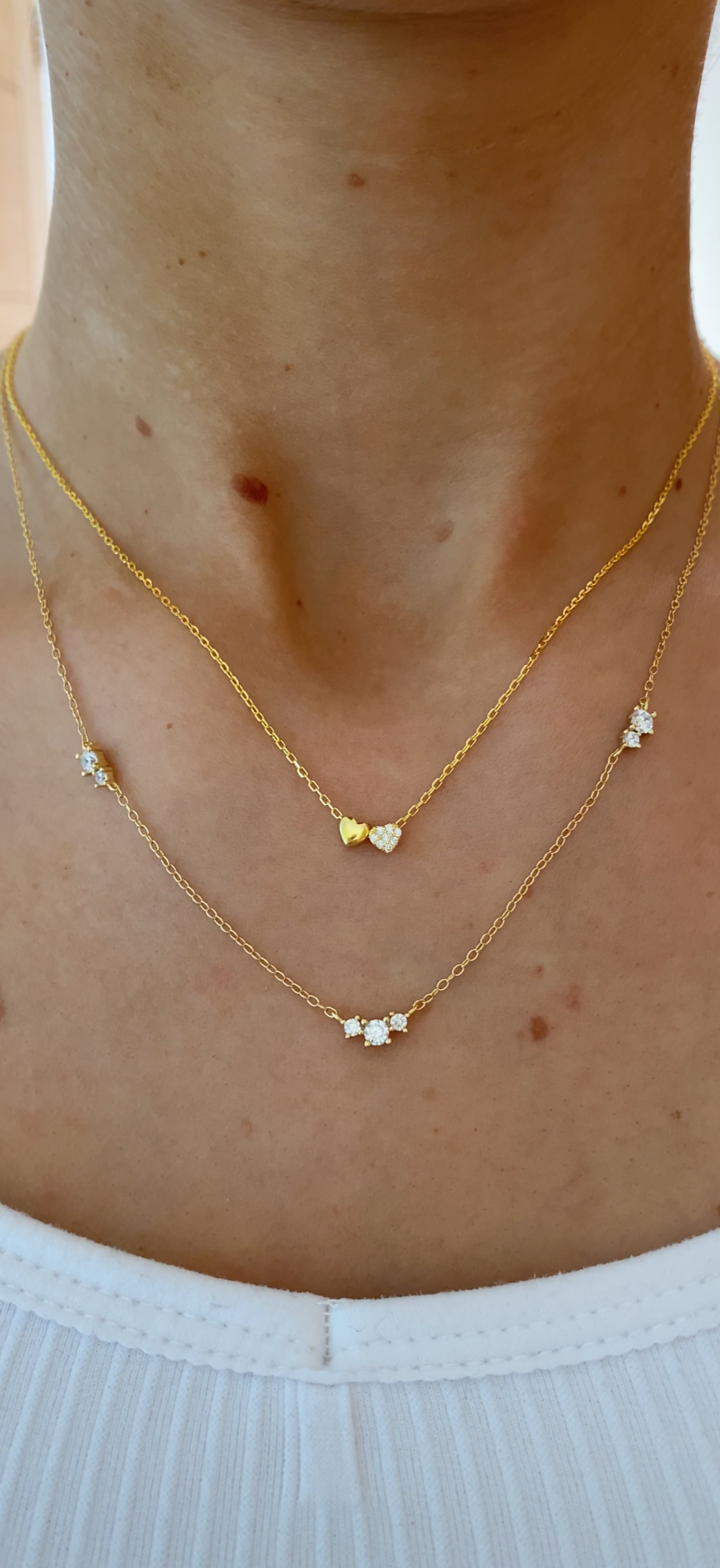 Silver Dainty Triple Crystal Necklace
