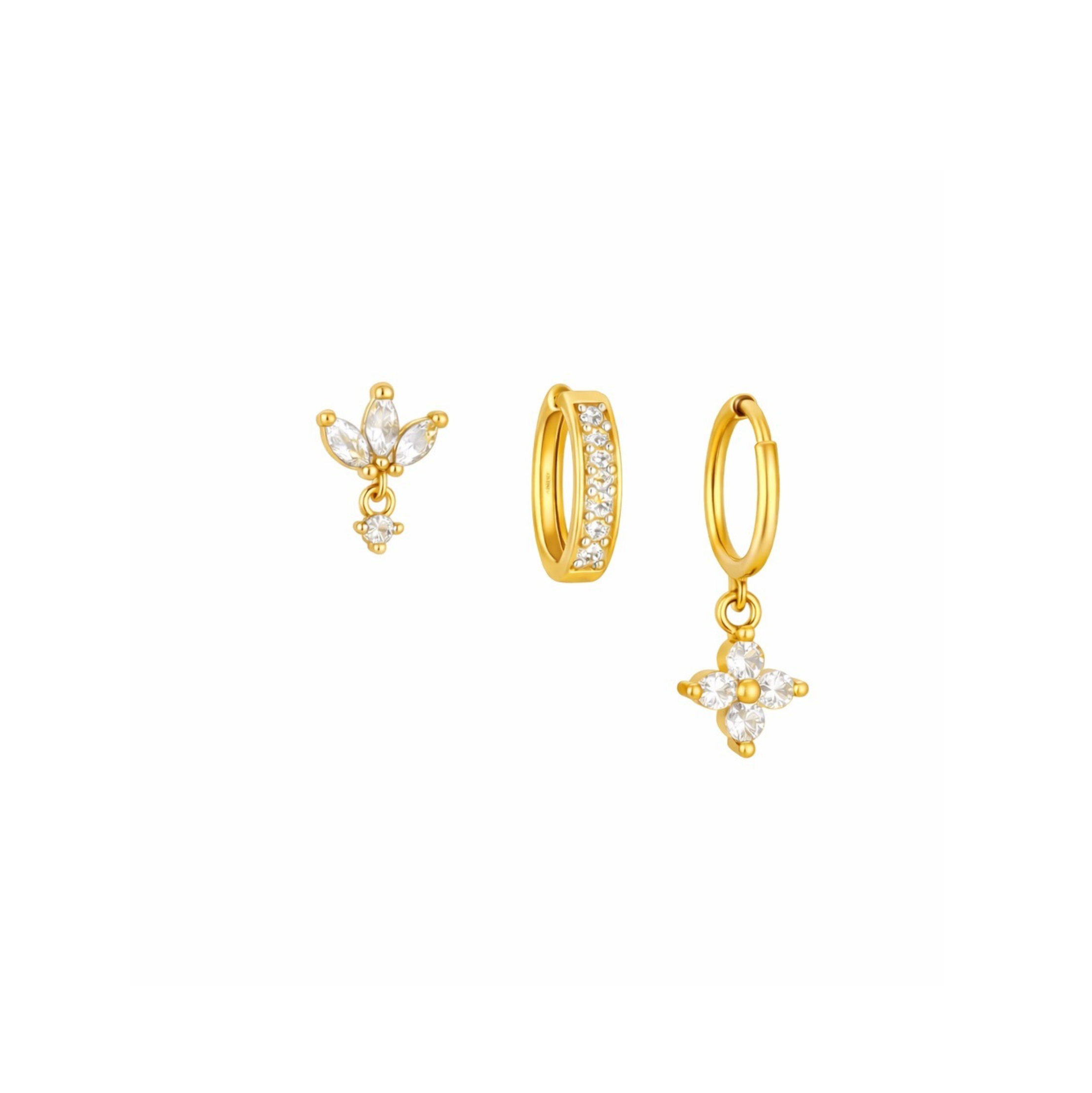 Gold Crystal Clover Trio Huggie Set
