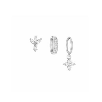 Silver Crystal Clover Trio Huggie Set