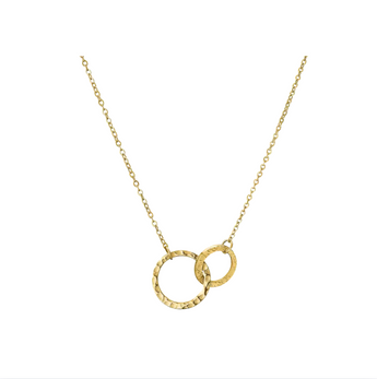 A graceful symbol of unity and elegance, this necklace showcases two interwoven gold-toned circles on a fine chain that speaks of connection and continuity; its sleek, minimalist design is ideal for everyday wear, representing infinite bonds with a radiant, durable finish.