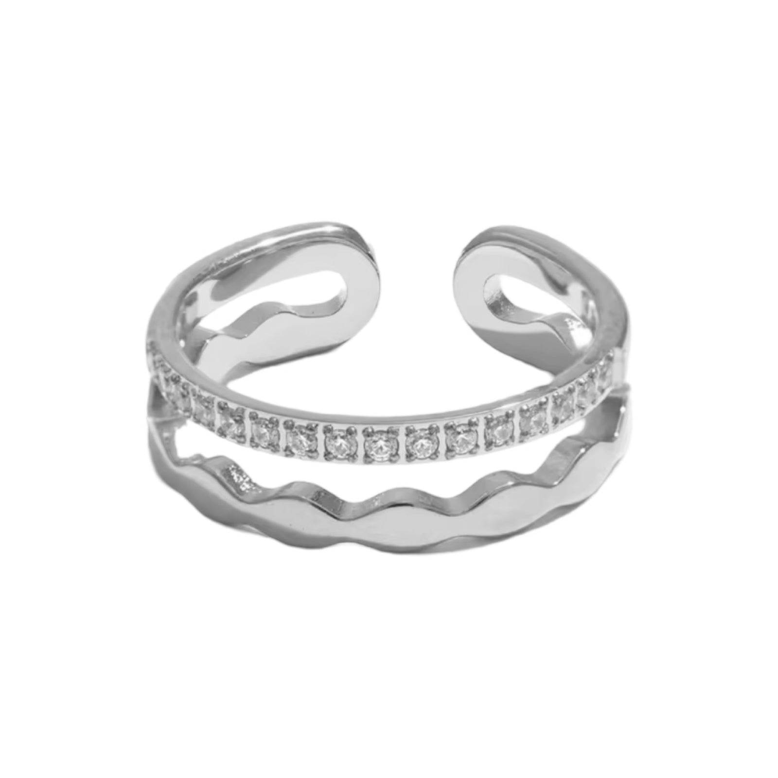 Silver Wavy Adjustable Layered Ring