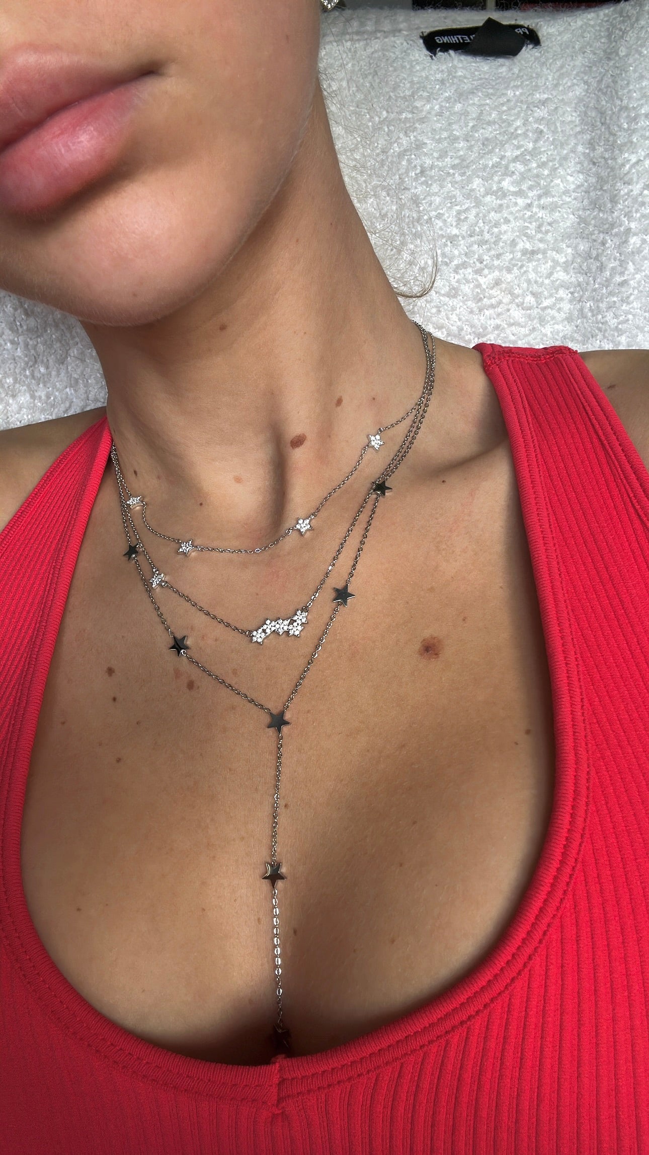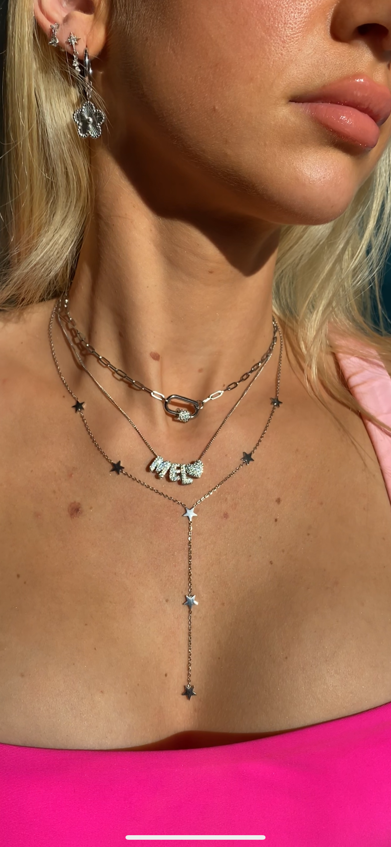 Embrace celestial elegance with this captivating piece. Featuring a delicate silver chain adorned with a dangling star pendant, this necklace adds a touch of sparkle to any ensemble. Its minimalist design makes it versatile for both everyday wear and special occasions, whether layered with other necklaces or worn solo for a subtle statement. Crafted with attention to detail, this necklace ensures durability and comfort. A thoughtful gift for a loved one or a delightful addition to your own collection, the Silver Dangly Star Necklace is a symbol of timeless style and grace.