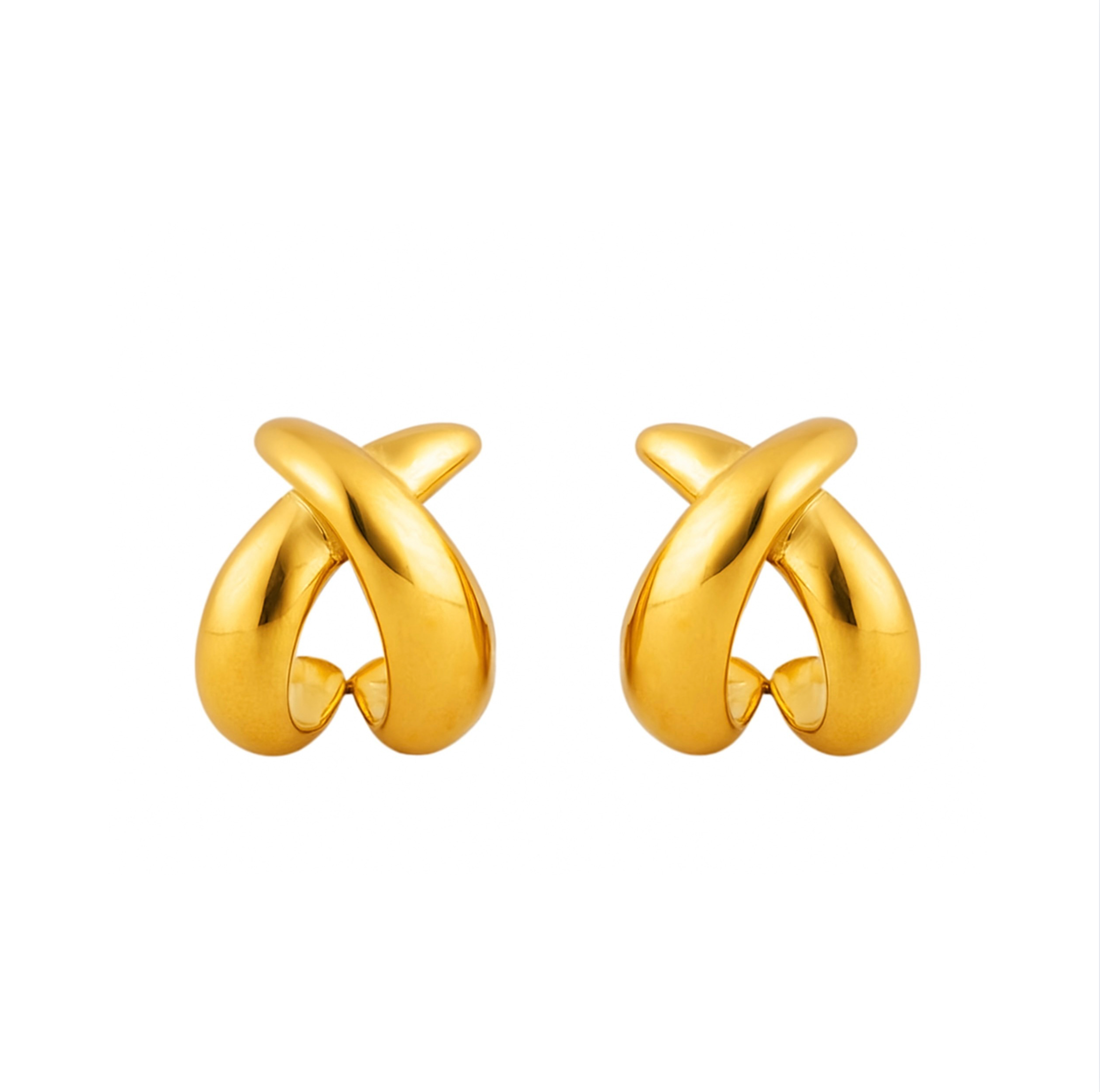 These bold gold-toned X-shaped studs make a striking statement with their chunky silhouette and minimalist edge, crafted from high-quality waterproof, tarnish-resistant metal so they stay sharp through everyday wear and stand out when stacked or worn solo.