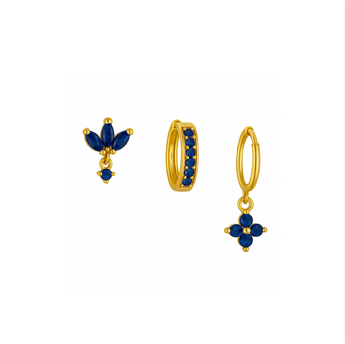 The Gold Navy Trio Huggie Set serves three sleek gold-plated, waterproof, tarnish-free huggies with navy gemstone accents that bring bold colour and effortless luxe to your ear game, perfect as a gold navy huggie earrings set, mix-and-match ear stack trio, and your “little treat” accessory for layering, gifting, or just showing yourself some sparkle.