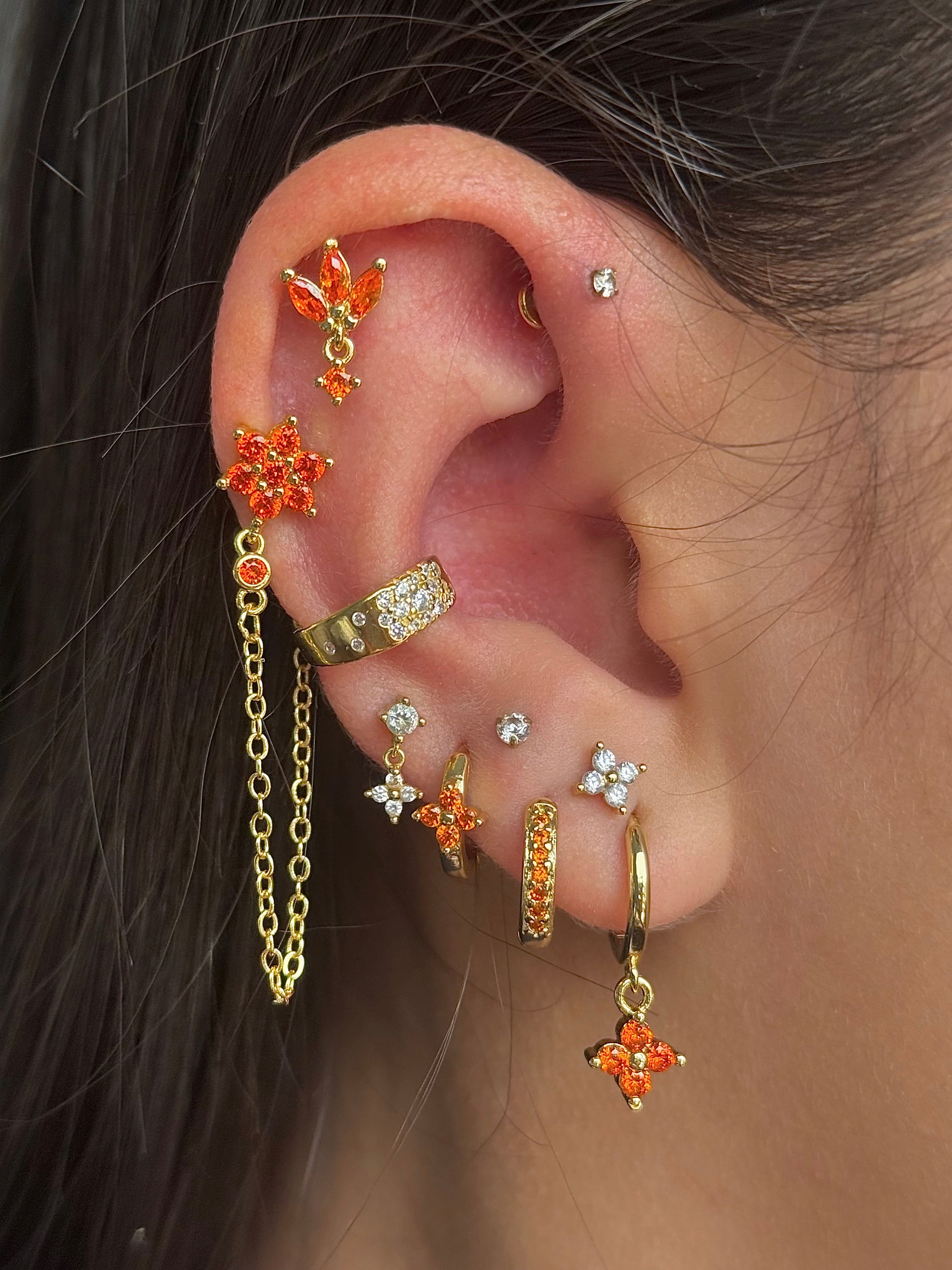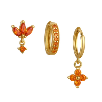 Gold Orange Trio Clover Huggie Set