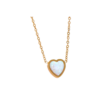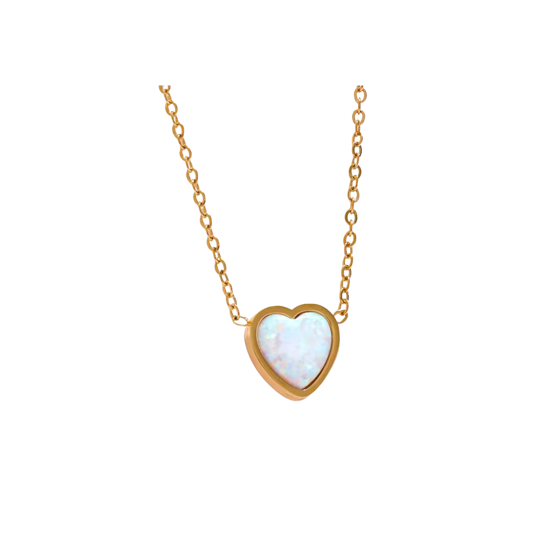 A dreamy, glow-giving staple, the Gold Small Opal Heart Necklace features a warm gold-plated, waterproof, tarnish-free stainless-steel chain paired with a shimmering opal-effect heart pendant that catches light with soft pastel tones, making it the perfect gold opal heart necklace, dainty heart pendant, and everyday piece for anyone who loves pretty, minimal jewellery with a touch of magic.
