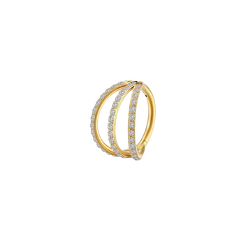 The Gold Triple Conch Hoops deliver a stacked look in a single piece: three sleek gold-plated stainless-steel hoops with a hinged mechanism for easy wear, designed to be waterproof and tarnish-free, making them perfect for styling your cartilage stack or conch piercing with minimal fuss and maximum impact ideal as your go-to gold conch hoops, triple stack cartilage hoops, and trending ear-stack piece this season.
