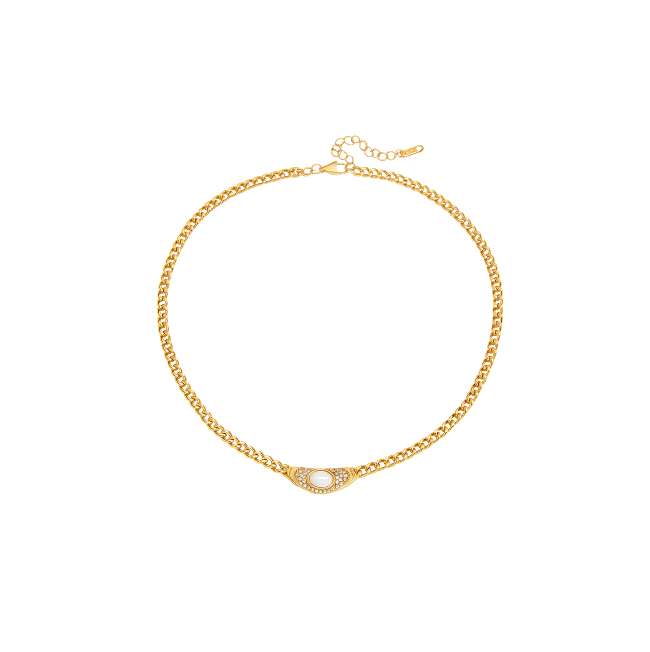 This chic necklace features a sleek gold-toned chain with a refined white-marble effect pendant, blending minimalist elegance with a modern twist; crafted from premium, tarnish-resistant materials designed for everyday wear, it’s the perfect statement piece for layering or gifting with timeless appeal.