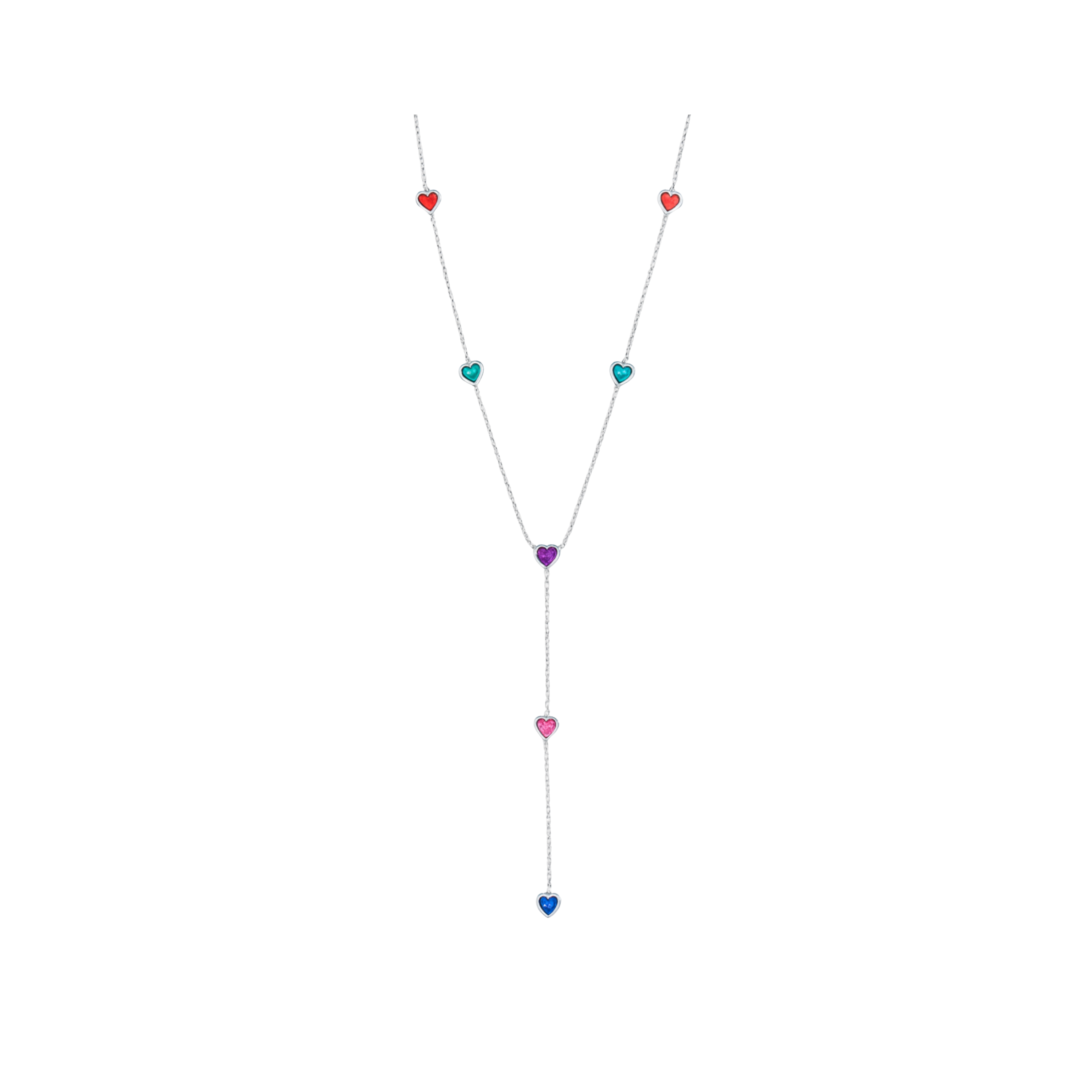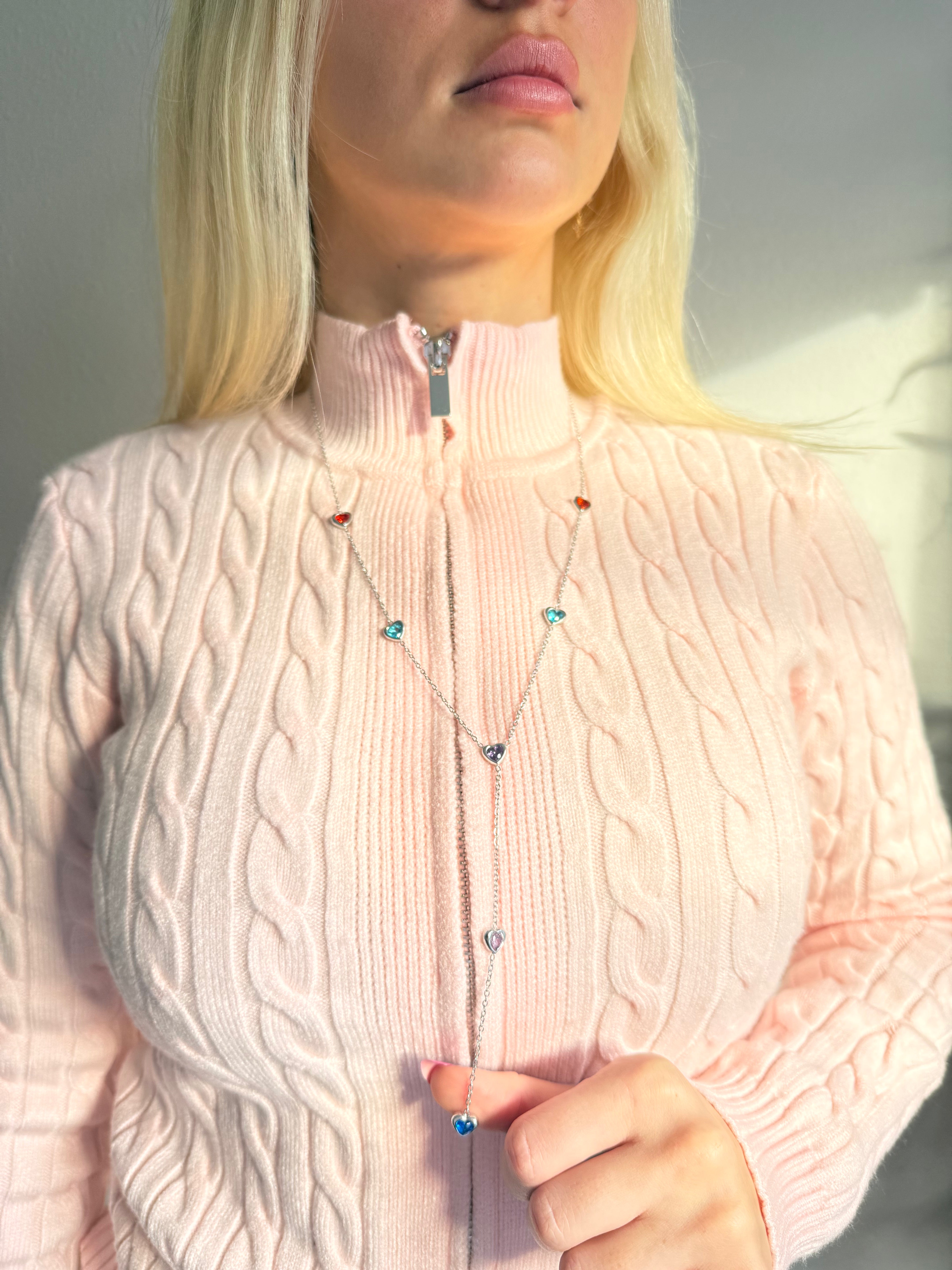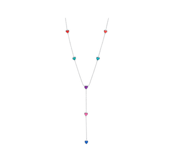 Silver Colourful Heart Y Necklace