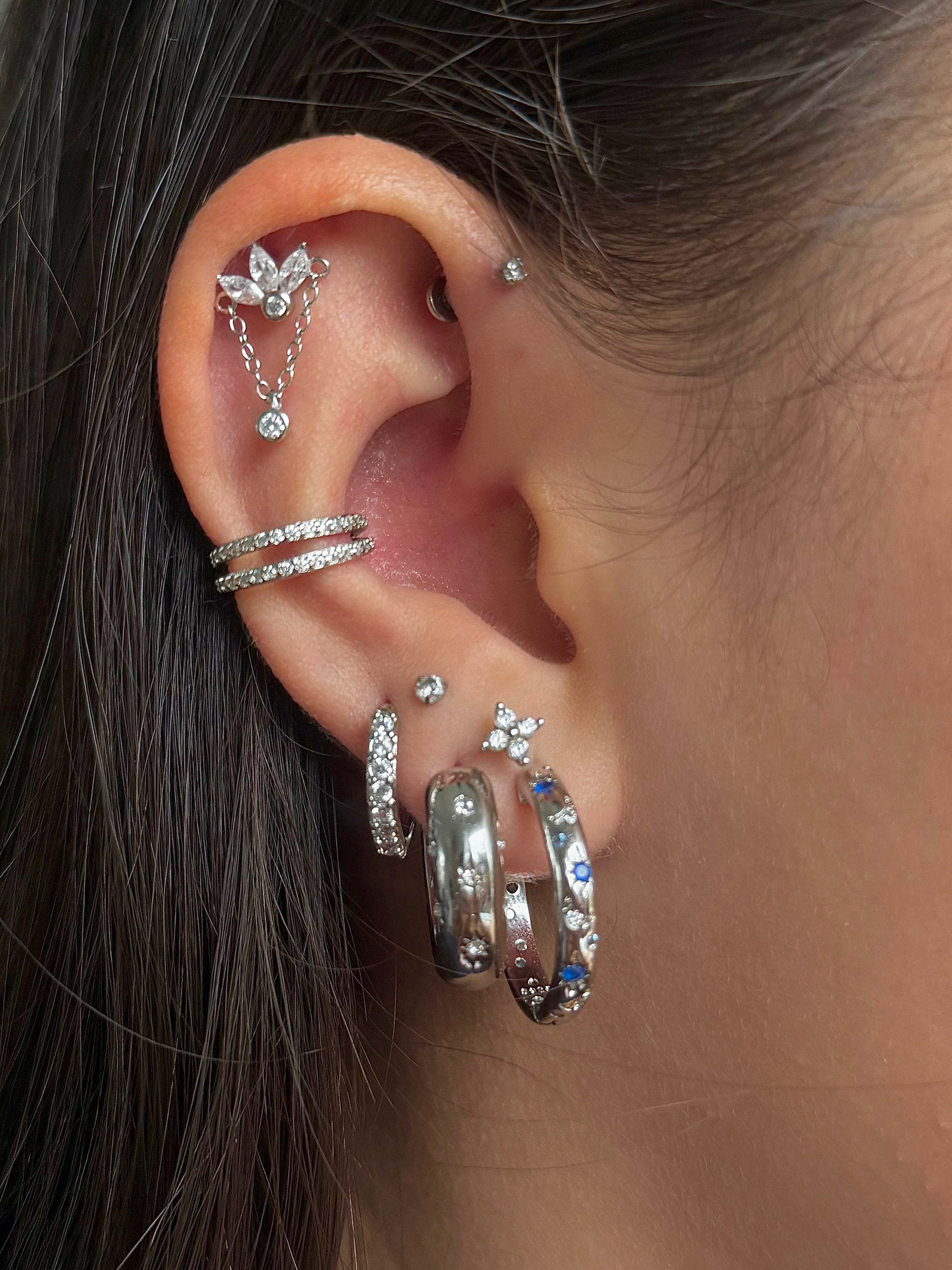 Elevate your ear stack with the Silver Crown Chain Helix Stud, a chic and versatile accessory that blends minimalist elegance with refined sparkle. Crafted from high‑quality stainless steel and enhanced with a subtle silver finish, this single stud features a delicate crown crystal detail and optional chain for a feminine, stylish edge.