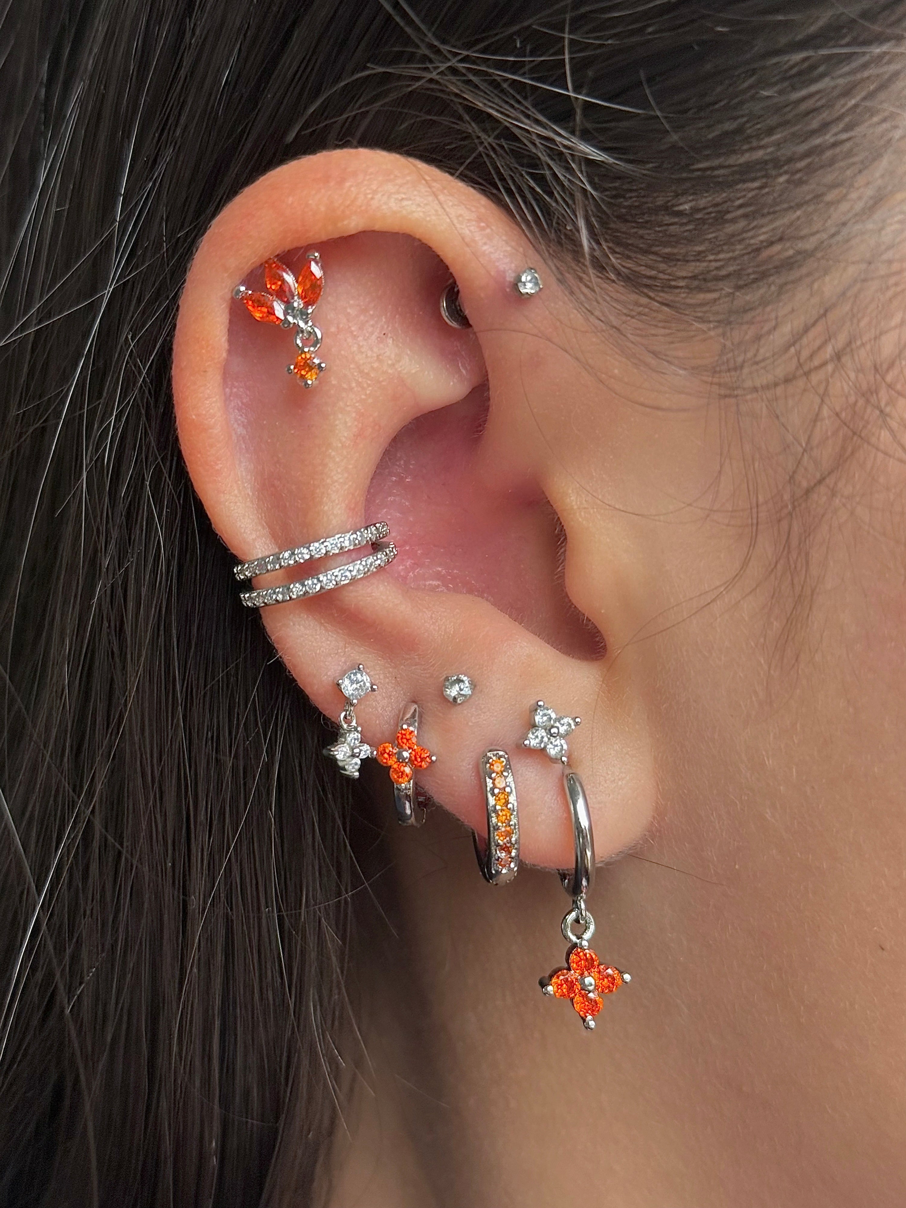 Brighten your day with the Silver Orange Trio Set, a cheerful collection of sparkly stainless steel huggies that bring a playful pop of colour to any ear stack. These waterproof earrings feature vibrant orange embellishments, secure clasps, and a versatile design—whether you're mixing and matching all three or styling just one for a subtle statement.