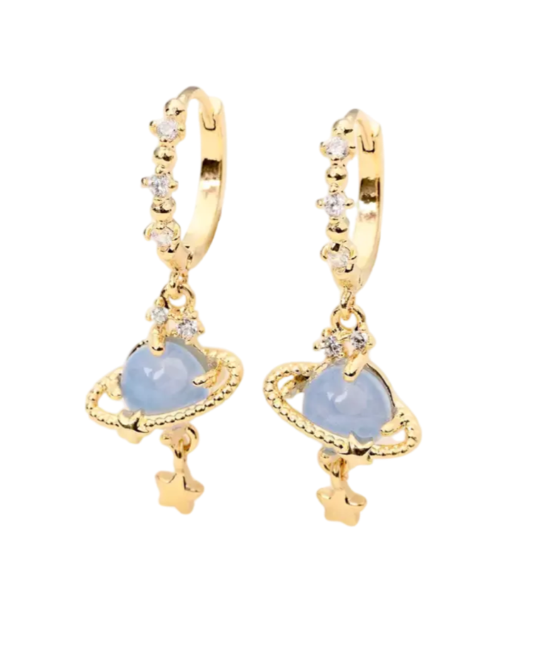 Gold Planet Turquoise Huggies