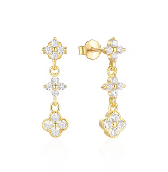 Add a whimsical touch to your jewelry collection with the Gold Triple Flower Dangly Studs! These delightful earrings feature a beautiful design with three dangling flowers, perfect for adding charm and elegance to any outfit. Ideal for both casual and special occasions, they make a lovely statement piece.
