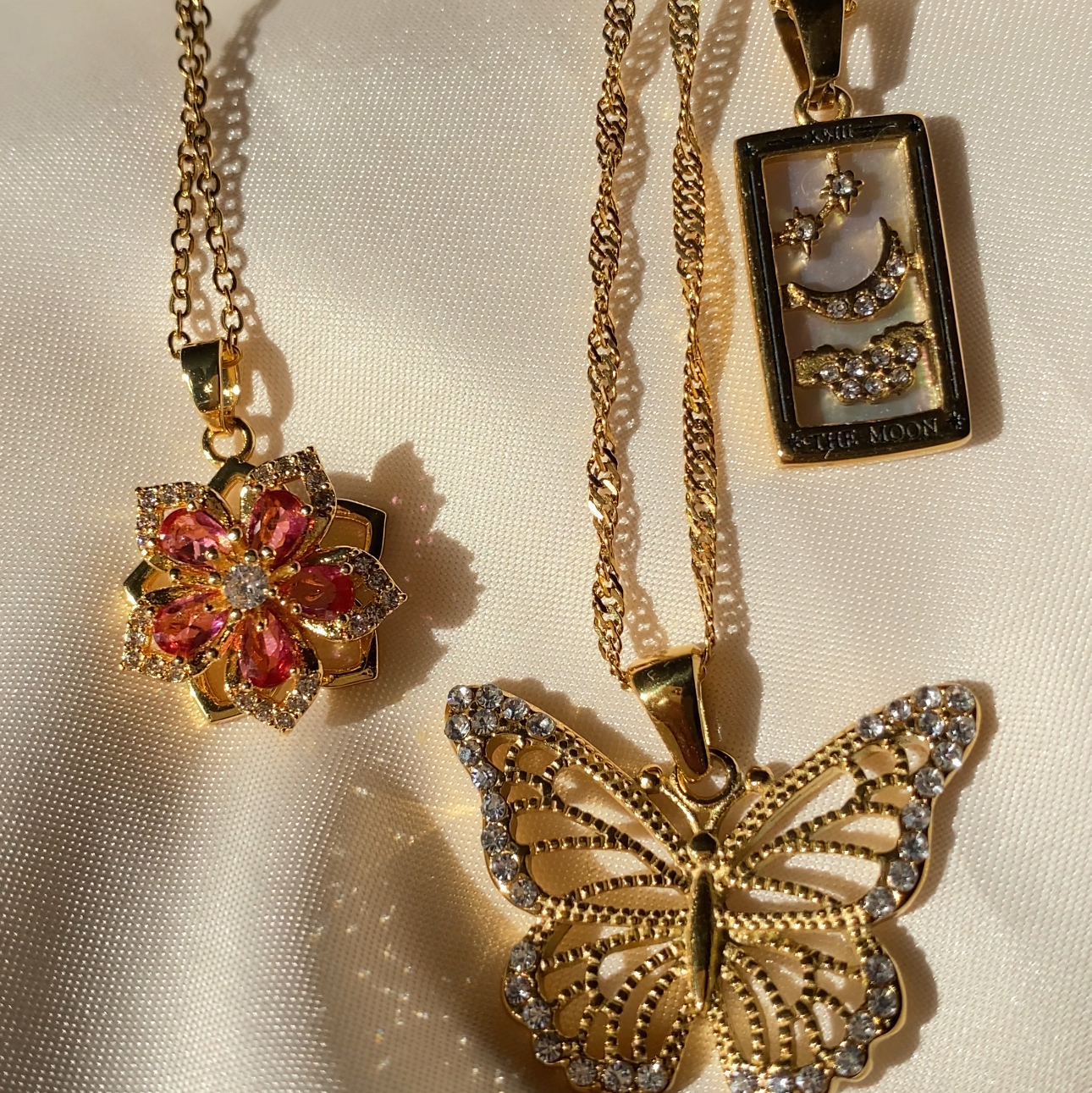 Add a whimsical touch to your jewellery collection with the Gold Pink Spinny Flower Necklace, a charming piece that beautifully combines playful design with elegance. This necklace features a delightful flower pendant in a vibrant pink hue that spins, adding movement and fun to any outfit. Perfect for layering or wearing alone as a statement piece, it’s ideal for both casual outings and special occasions. Crafted from high-quality materials, this necklace ensures durability and comfort for all-day wear. Embrace your unique style with this enchanting flower necklace!
