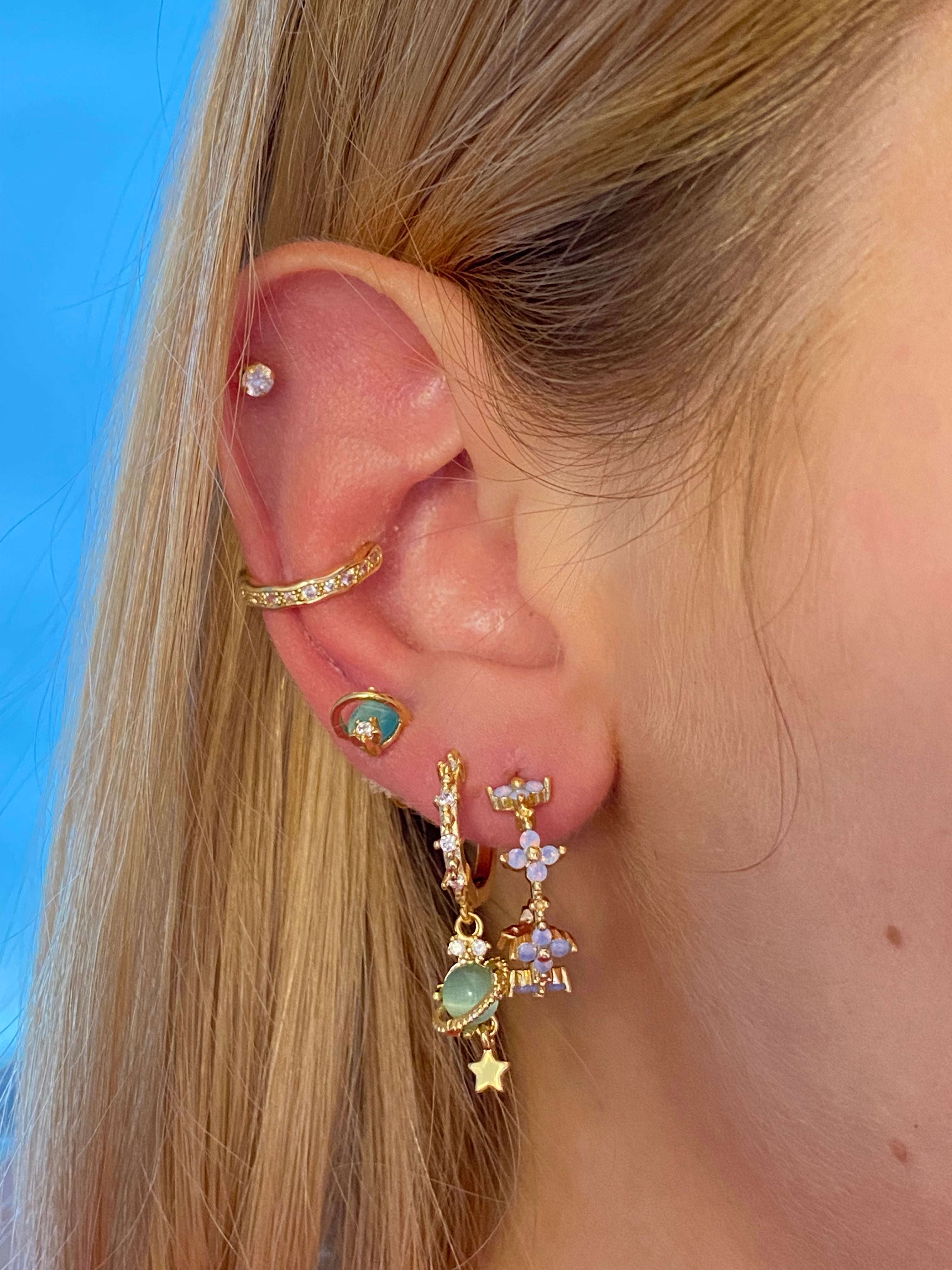 Gold Planet Turquoise Huggies