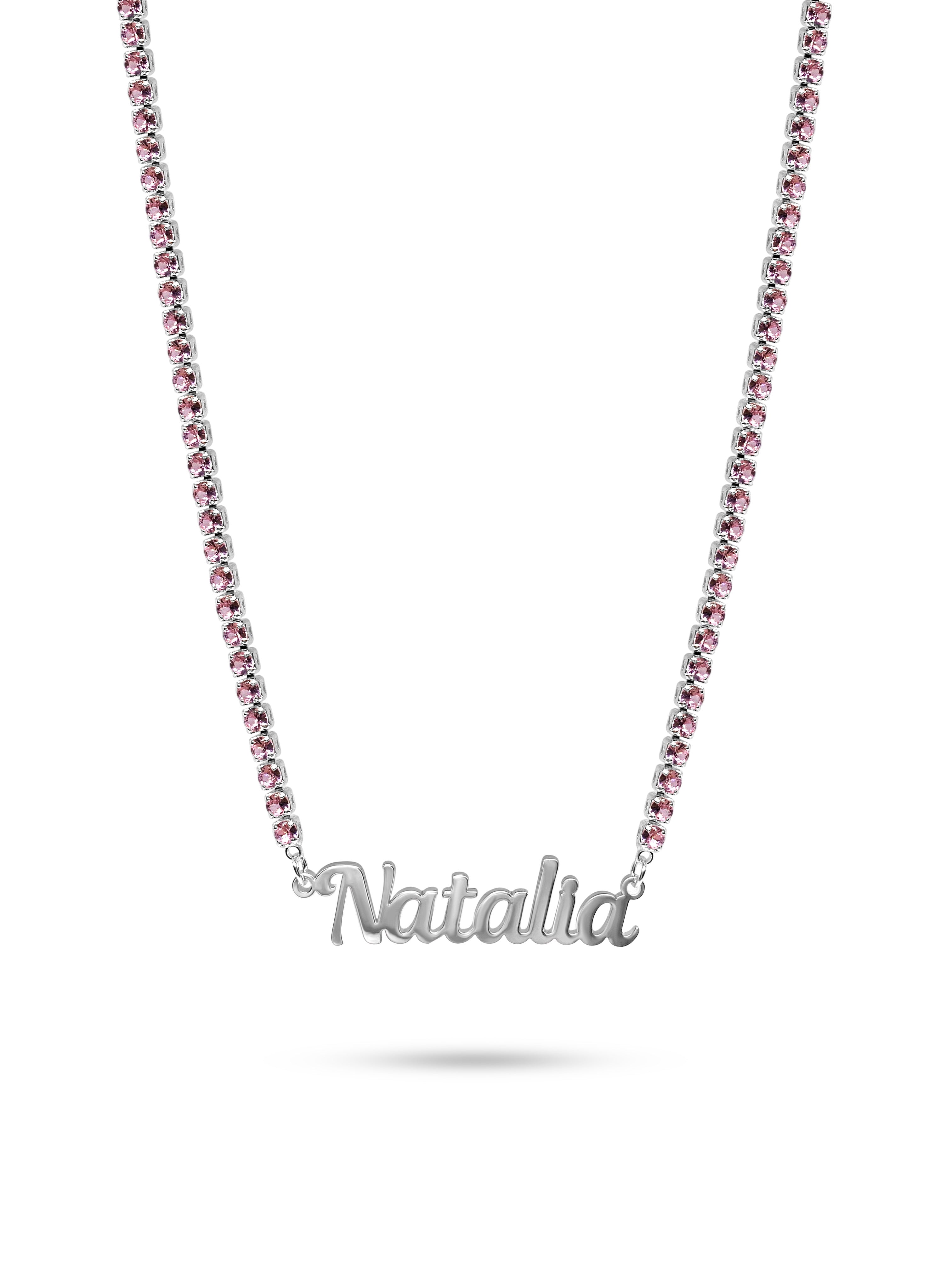 Silver Pink Icy Custom Name Necklace