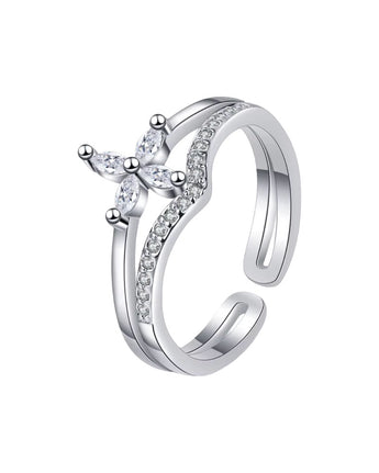 Silver Unique Flower Adjustable Ring