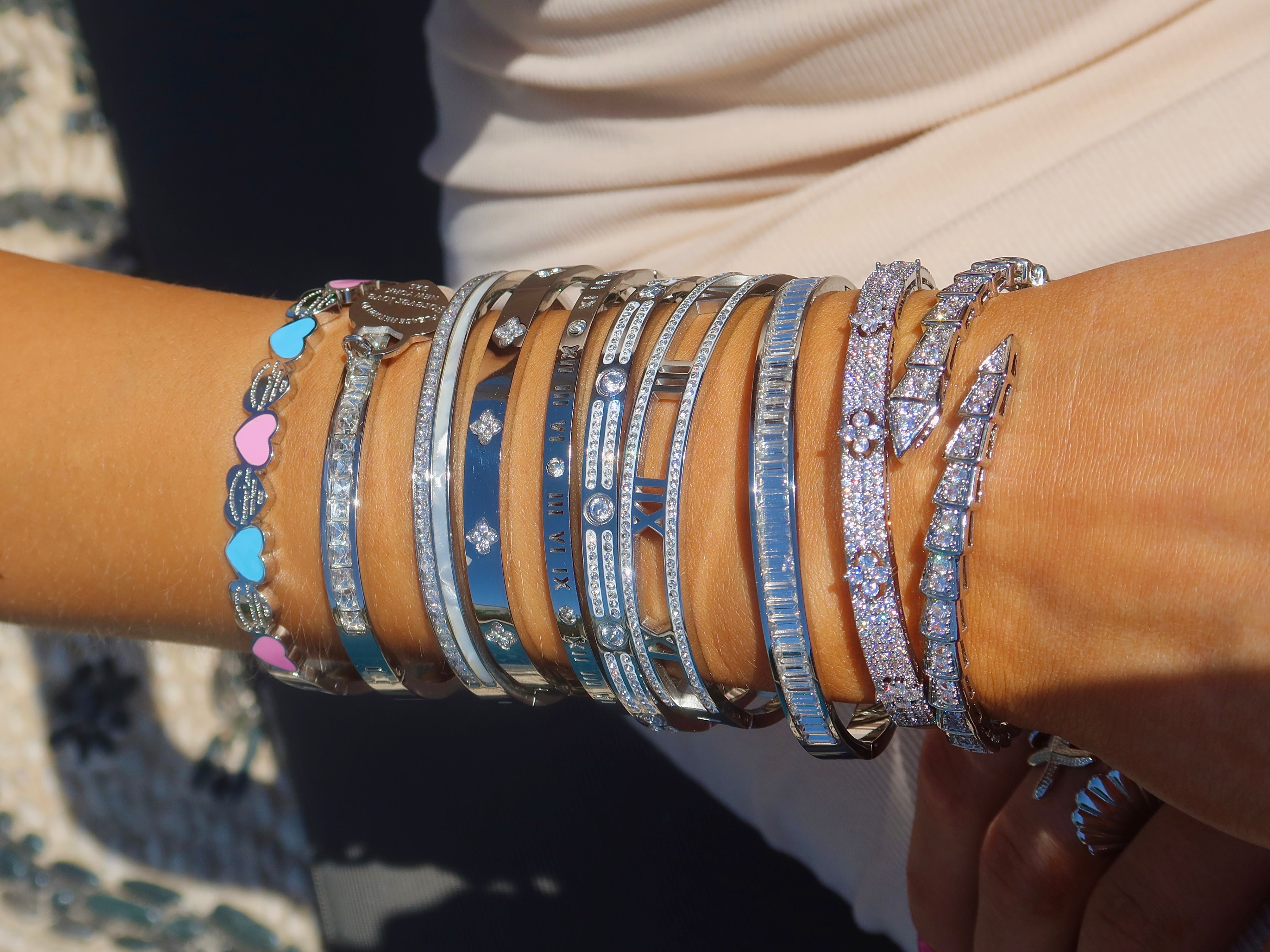 Add a glamorous touch to your style with the Silver Crystal and Diamond Bangle! This stunning silver-plated bangle features dazzling crystals and diamond-inspired accents, perfect for adding some sparkle to both everyday looks and special occasions. Whether you're looking to elevate your casual outfits or accessorize for a night out, this bangle is versatile, chic, and timeless.