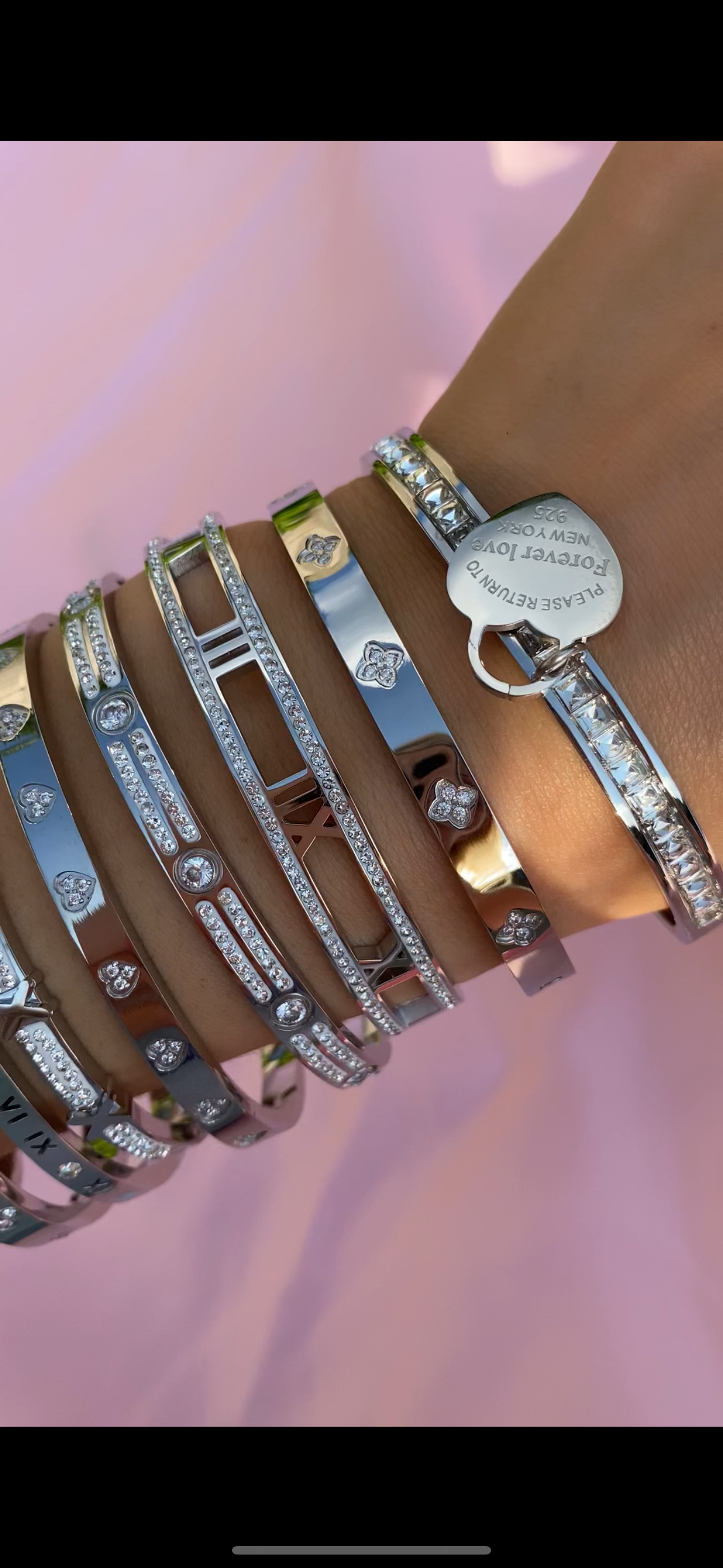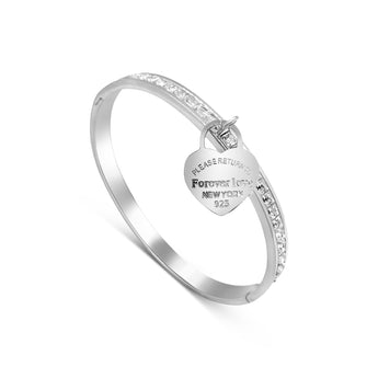 Embrace timeless elegance with the Silver Forever Love Crystal Bangle! This stunning silver-plated bangle is adorned with sparkling crystals and features a delicate "forever love" inscription, making it the perfect symbol of lasting affection. Whether you’re gifting it to someone special or adding it to your own collection, this bangle is the ideal blend of romance and sophistication. It’s versatile enough to elevate any look, from casual to dressy.