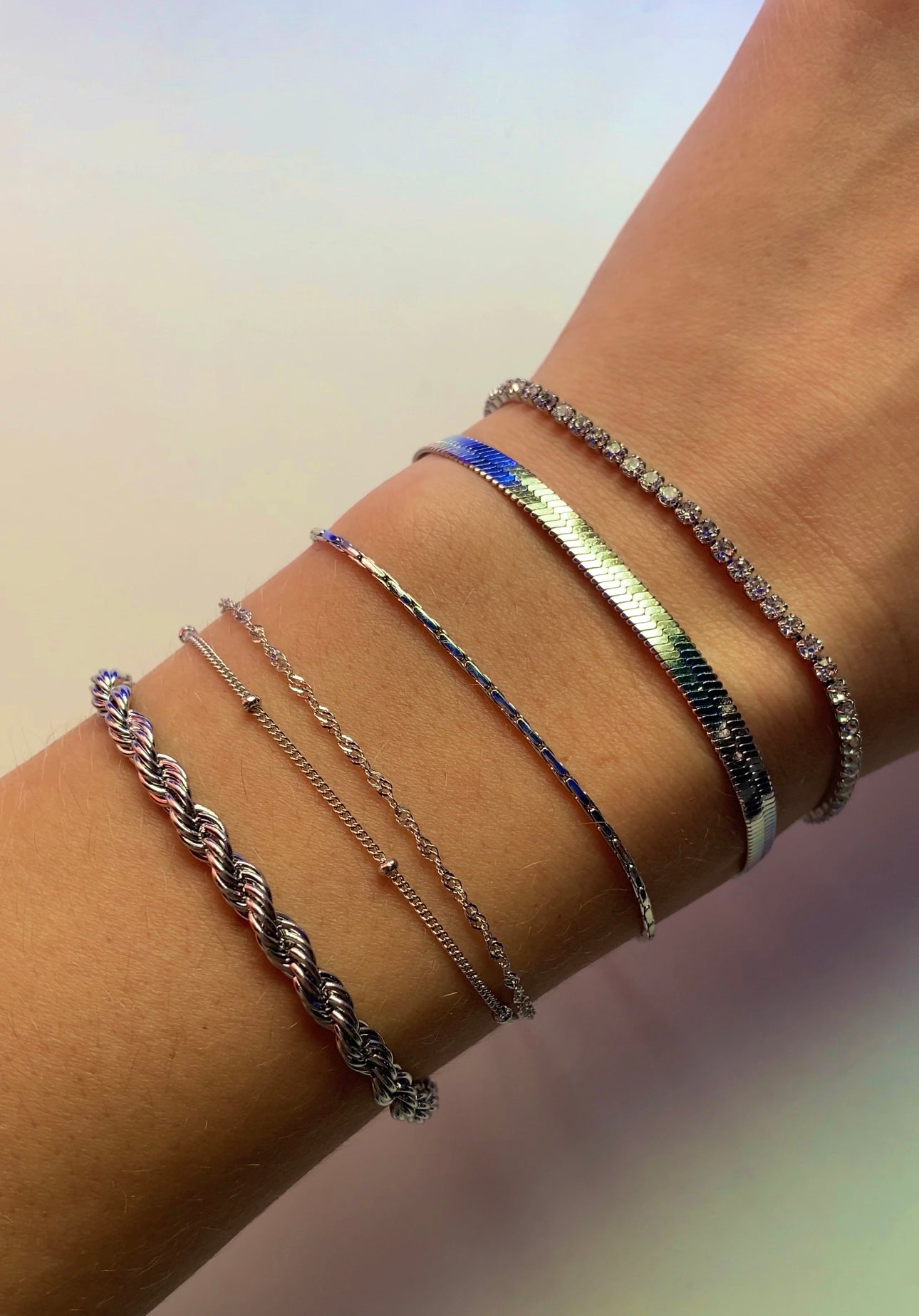 Add a radiant glow to your wrist with the Silver Aurora Glow Bracelet! This stunning silver-plated bracelet is designed to elevate your everyday look or add a touch of elegance to special occasions. Whether worn solo or stacked with other pieces, this bracelet brings effortless sophistication and shine to any outfit. It's a versatile accessory that is perfect for anyone who loves timeless, chic style.