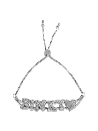 A personalized piece that adds a touch of sparkle to your jewellery collection. Crafted from high-quality silver, this bracelet allows you to customize it with your chosen name or word, making it a unique accessory or a thoughtful gift. Its sleek design and radiant finish make it perfect for both everyday wear and special occasions. Whether you're treating yourself or searching for a meaningful present, the Silver Icy Custom Name Bracelet is a stylish addition to any ensemble.Please note, as a custom product, delivery may take 2-4 weeks.