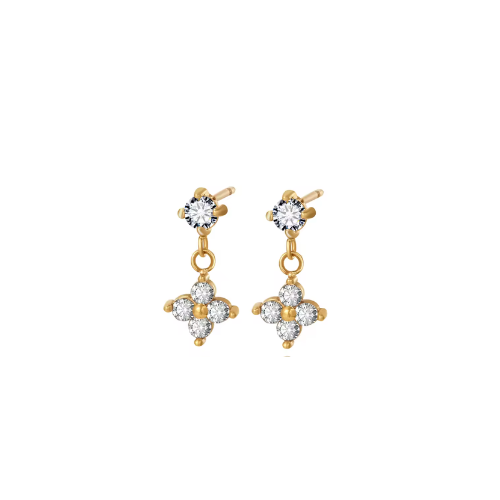 Gold Clover Crystal Studs