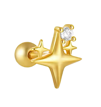 Gold Crystal and Star Helix Stud