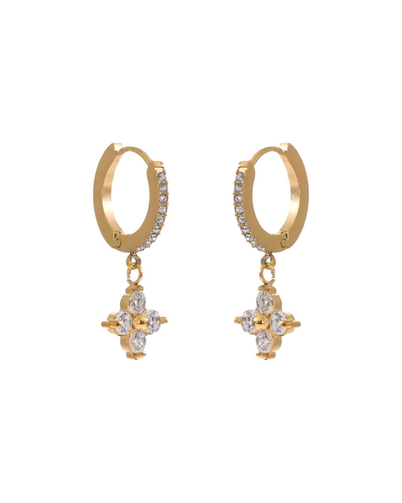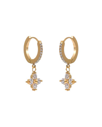 A floral-inspired sparkle for your jewellery collection. These dainty gold huggie hoops feature a delicate flower charm adorned with shimmering crystals, adding a subtle yet elegant touch to your look. Lightweight and comfortable, they’re perfect for all-day wear, whether styled solo or stacked with other earrings. Ideal for lovers of nature-inspired jewellery, these timeless huggies bring effortless charm and sophistication to any outfit.