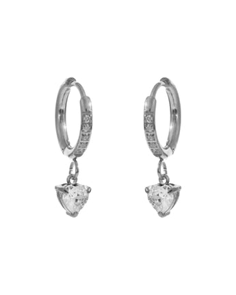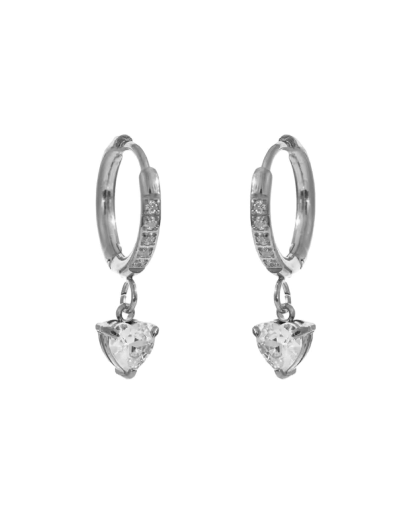 A delicate blend of sparkle and charm. These dainty silver huggie hoops feature a shimmering crystal heart charm, adding a subtle yet eye-catching touch to your look. Lightweight and comfortable, they hug your ears perfectly, making them ideal for all-day wear. Whether worn alone for an elegant statement or stacked with other earrings, these timeless huggies bring effortless romance to any outfit. A must-have for lovers of dainty, heart-inspired jewellery.