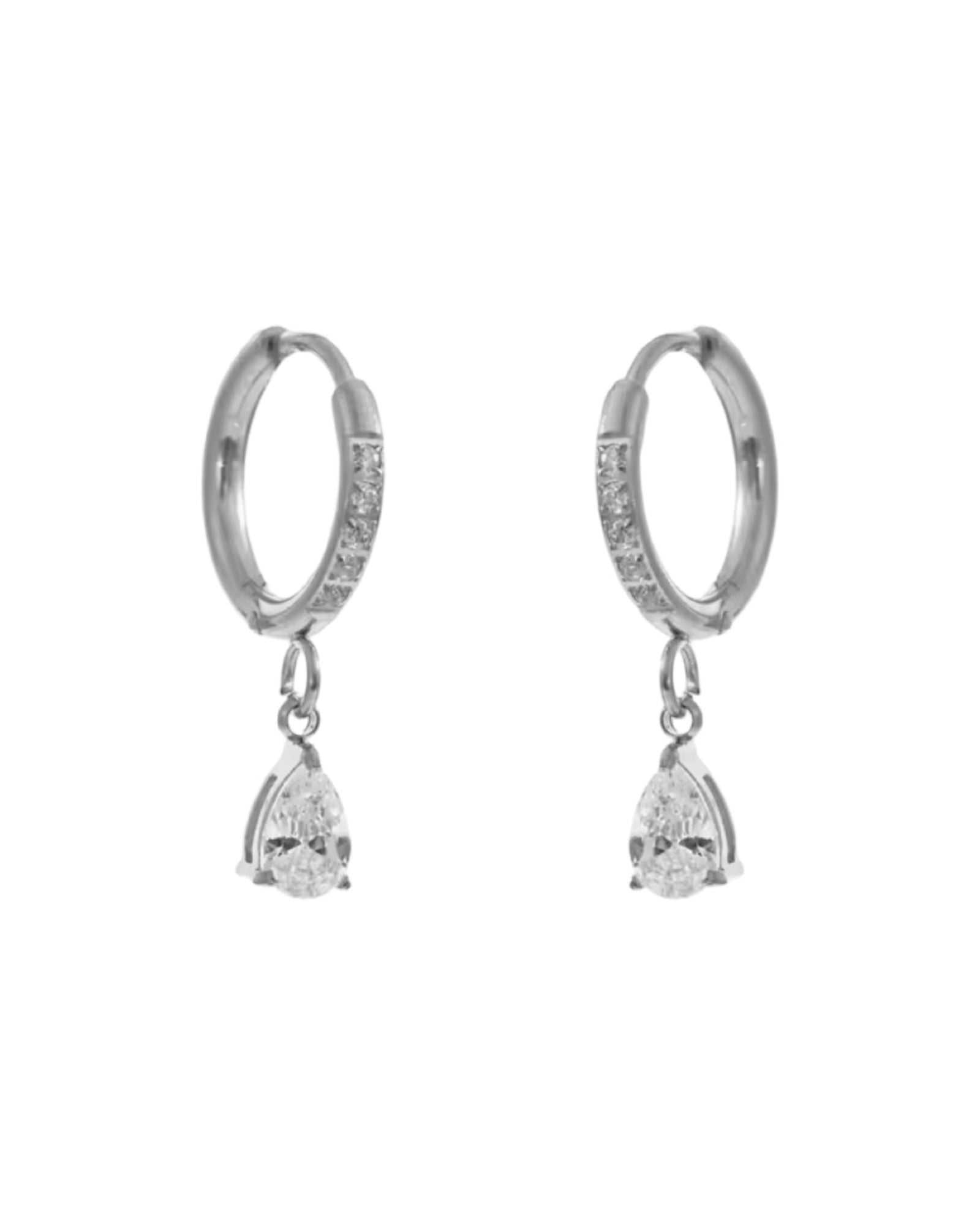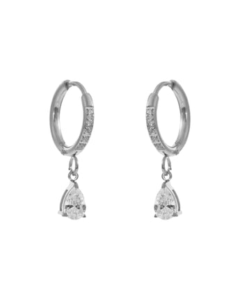 A delicate blend of sparkle and sophistication. These dainty silver huggie hoops feature a shimmering teardrop crystal charm, adding an effortless touch of elegance to any look. Designed for comfort and versatility, they hug your ears perfectly, making them ideal for everyday wear or special occasions. Whether styled solo or stacked with other earrings, these timeless huggies are a must-have for lovers of understated yet eye-catching jewellery.
