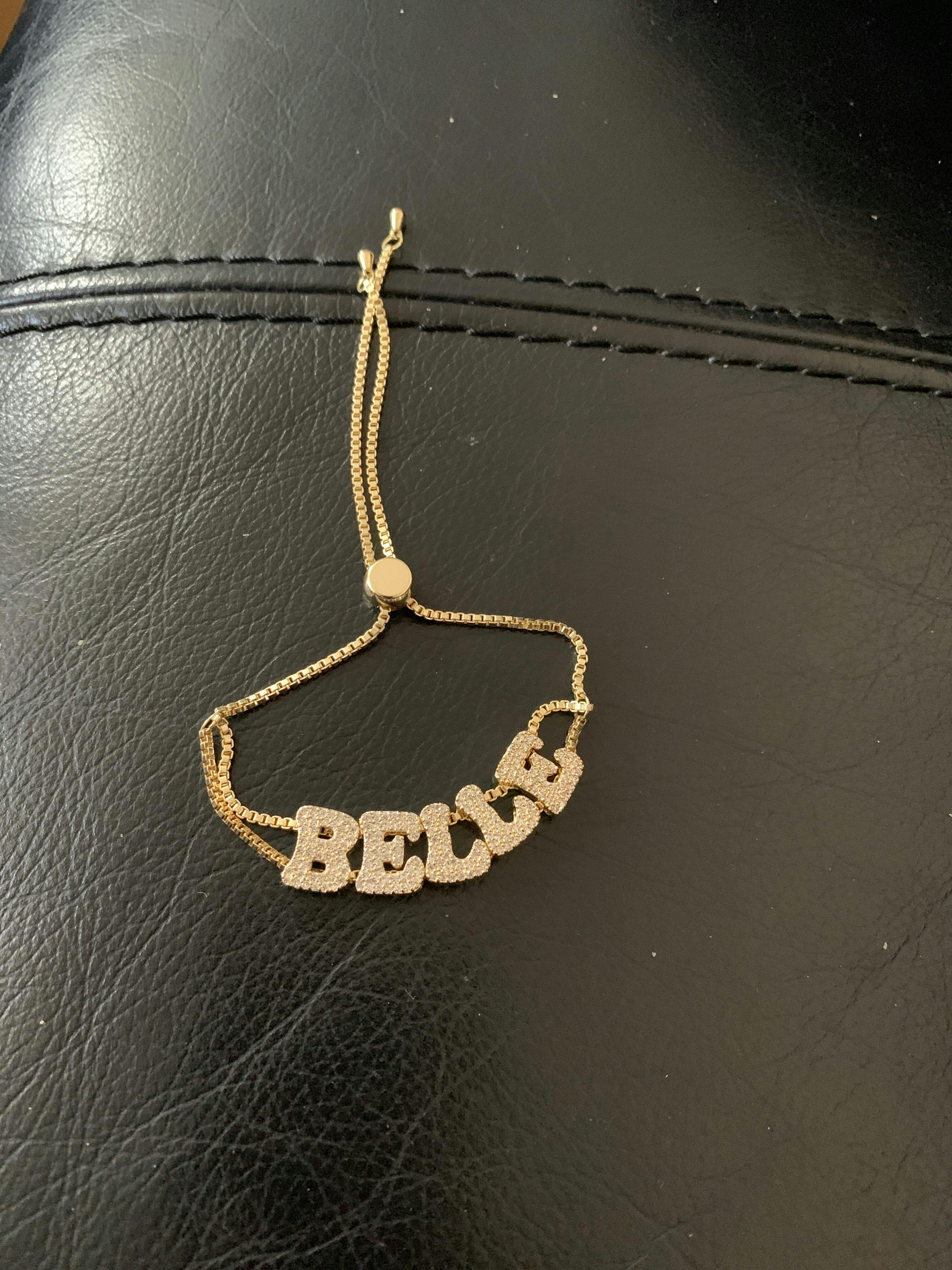 Make a statement with this personalized piece. Crafted from high-quality materials, this bracelet allows you to customize it with your chosen name or word, adding a unique touch to your jewellery collection. Its sleek design and radiant gold finish make it perfect for both everyday wear and special occasions. Whether you're treating yourself or searching for a thoughtful gift, the Gold Icy Custom Name Bracelet is a meaningful addition to any ensemble. Please note, as a custom product, delivery may take 2-4 weeks.
