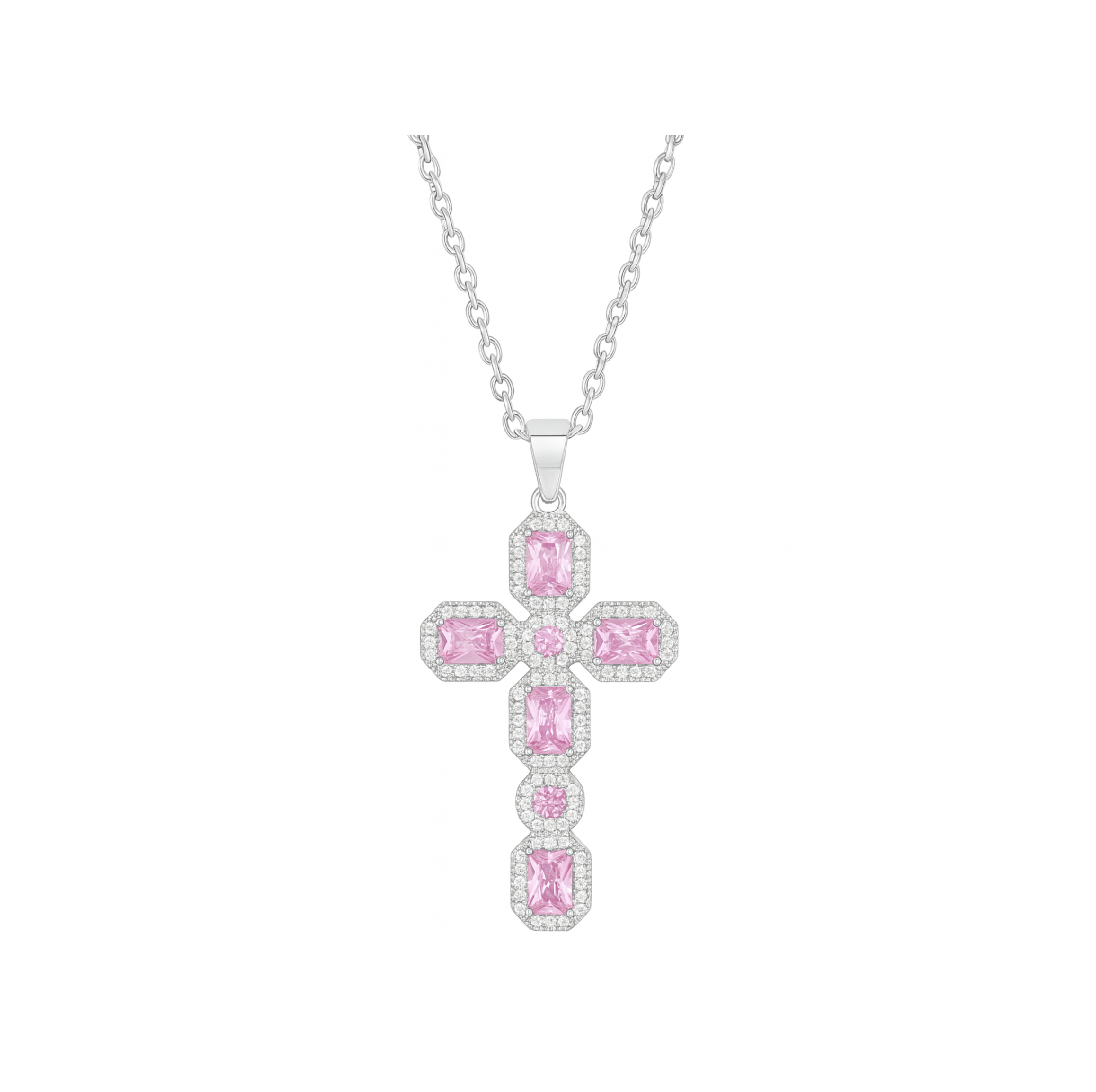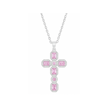Silver Baby Pink Cross Necklace