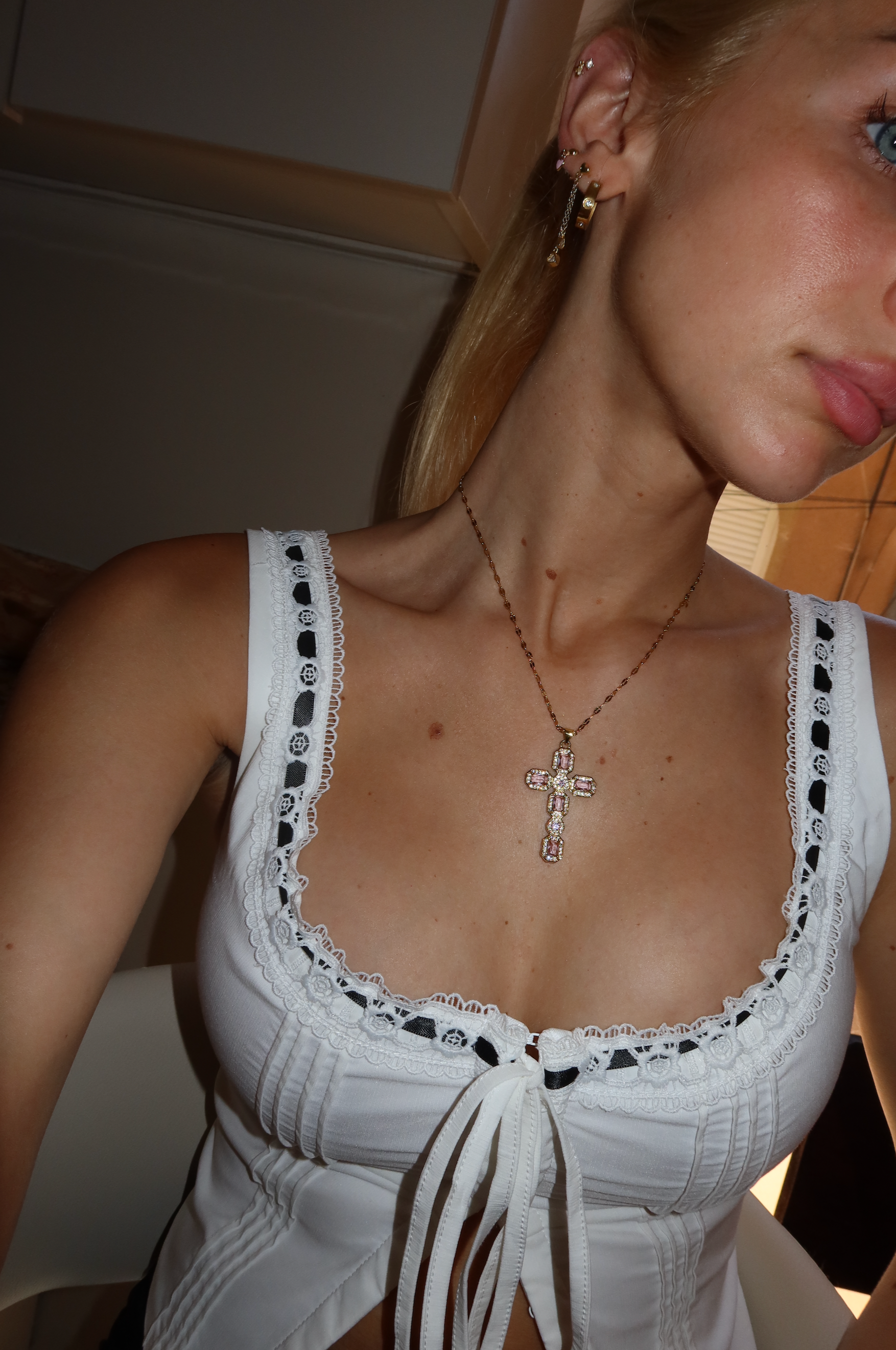 - Silver Cross with crystal embellishments