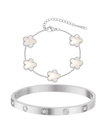 Enhance your jewellery collection with the Silver Marble Flower Bracelet and Bangle Set, a charming duo that beautifully combines elegance with a touch of whimsy. This set features a delicate bracelet and a matching bangle, both adorned with lovely marble flower accents that add a unique flair to any outfit. Perfect for stacking or wearing individually, these pieces are ideal for both casual outings and special occasions. Crafted from high-quality materials, this set ensures durability and comfort for all-day wear. Embrace your unique style with this enchanting marble flower set!